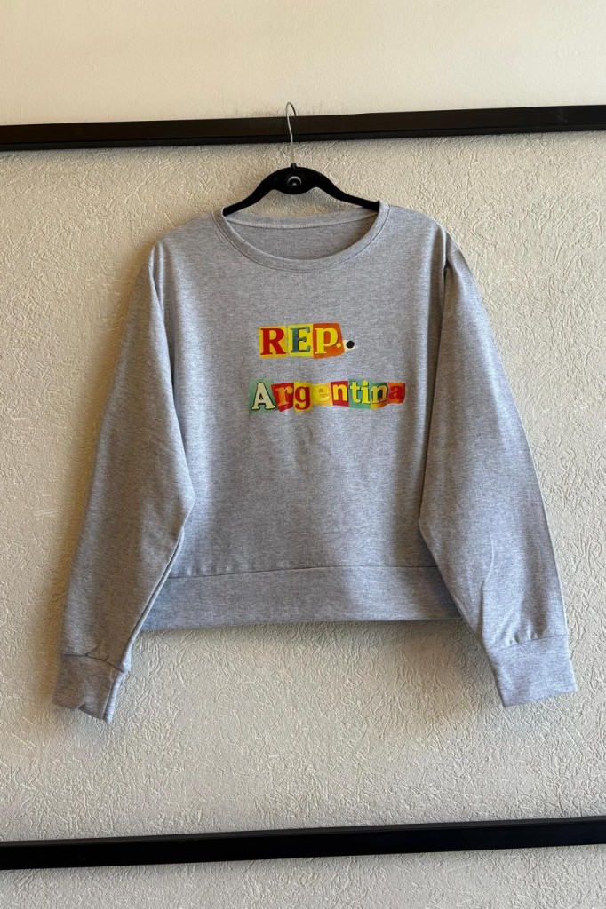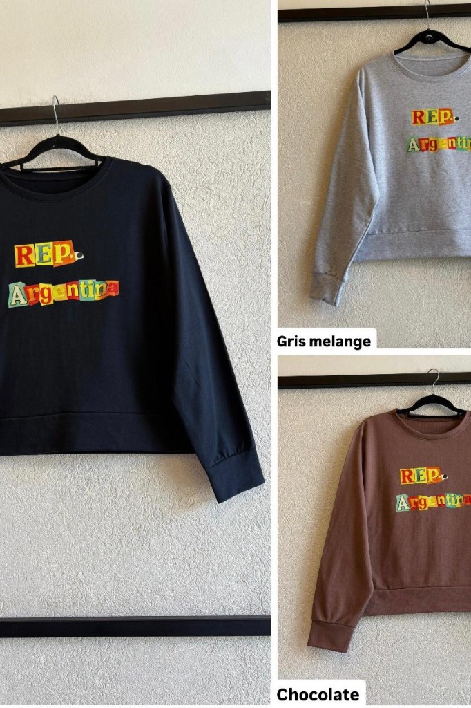 BUZO IRMA ESTAMPA: REP. ARGENTINA TELA: rustico TALLE UNICO: Contorno de busto: 122 cm. Sisa: 28 cm. Largo: 59 cm. Las medidas son aproximadas y pueden tener variaciones.
