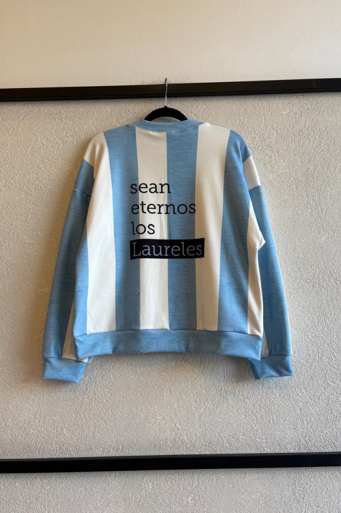 BUZO SEAN ETERNOS LOS LAURELES TELA: darlon TALLE UNICO: Contorno de busto: 110 cm. Sisa: 30 cm. Largo: 60 cm. ABARCA HASTA UN TALLE 4/5 APROX. Las medidas son aproximadas y pueden tener variaciones.