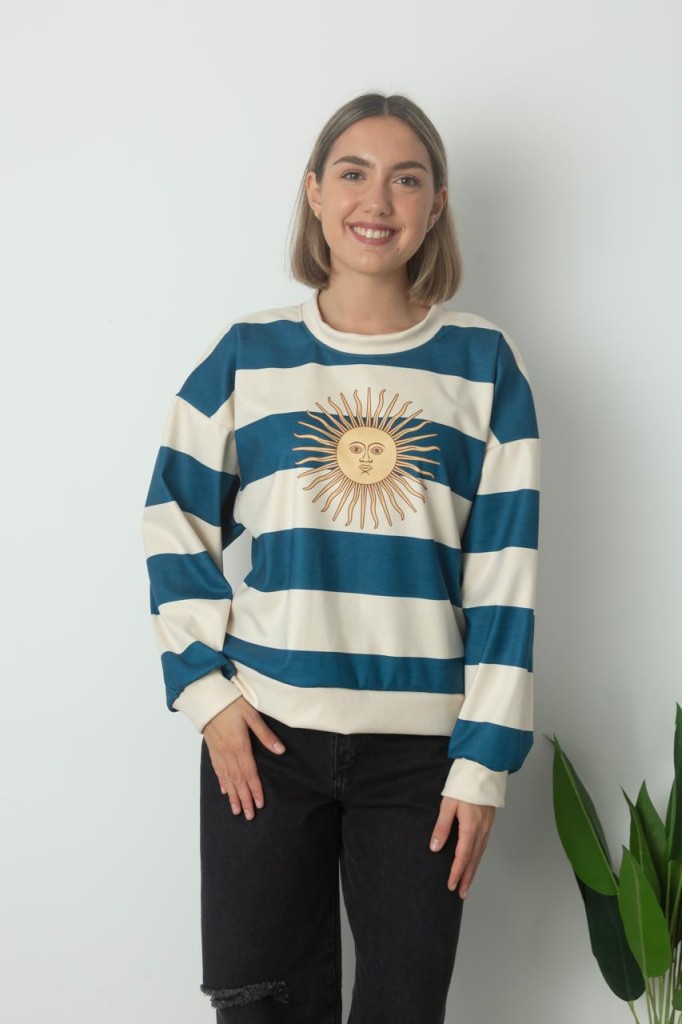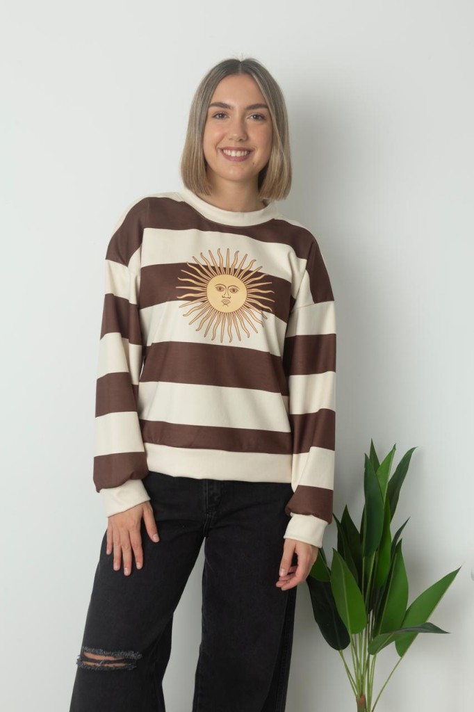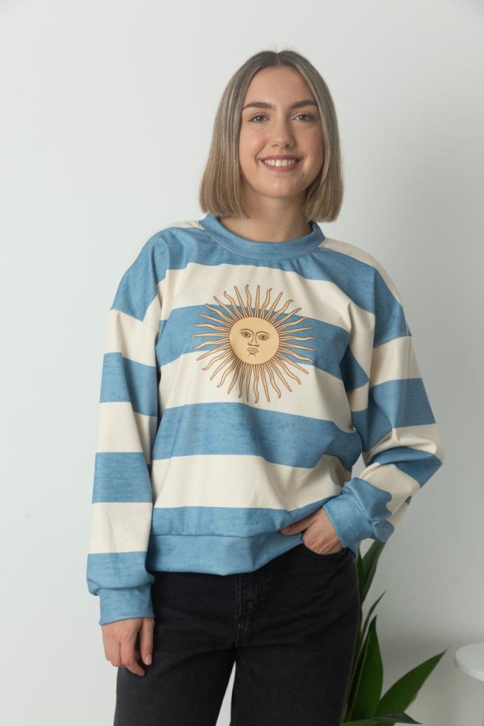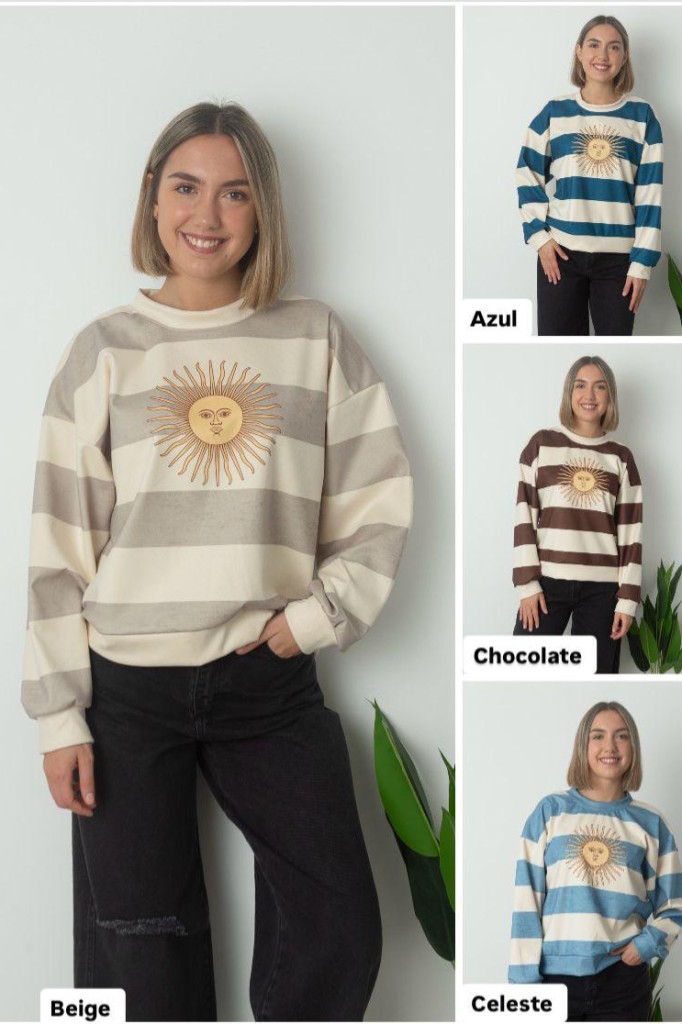 BUZO SOL TELA: darlon TALLE UNICO: Contorno de busto: 110 cm. Sisa: 30 cm. Largo: 60 cm. ABARCA HASTA UN TALLE 4/5 APROX. Las medidas son aproximadas y pueden tener variaciones.