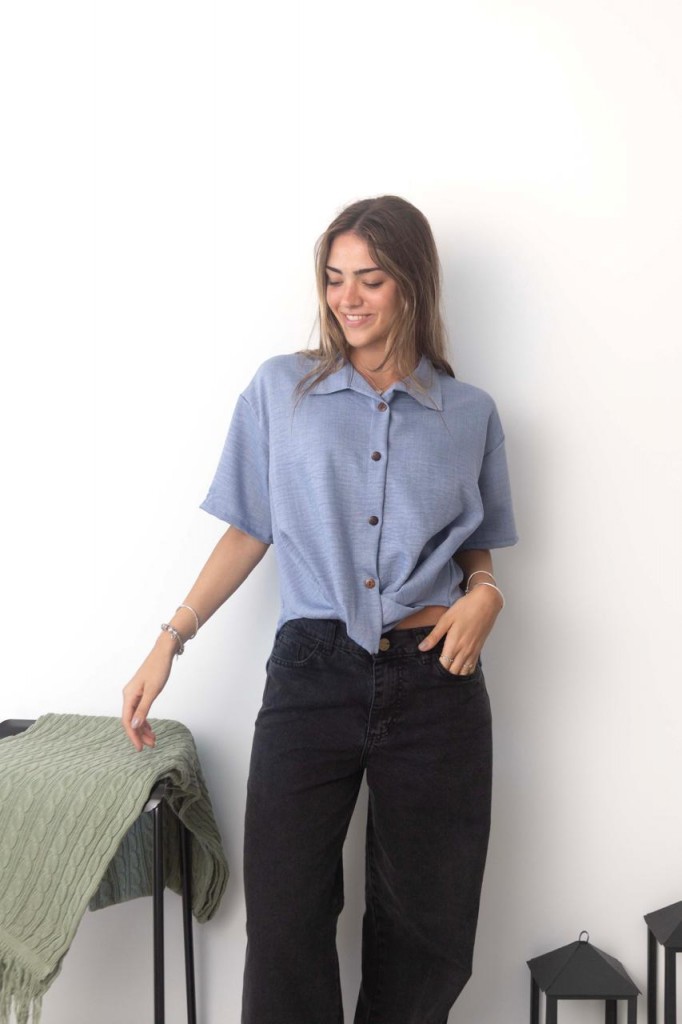 CAMISA NUDO LELIS TELA: lelis TALLE 3: Contorno de busto: 124 cm. Sisa: 23 cm. Largo delantero: 50 cm Largo trasero: 65 cm. TALLE 5: Contorno de busto: 130 cm. Sisa: 25 cm. Largo delantero: 53 cm Largo trasero: 68 cm. Las medidas son aproximadas y pueden tener variaciones