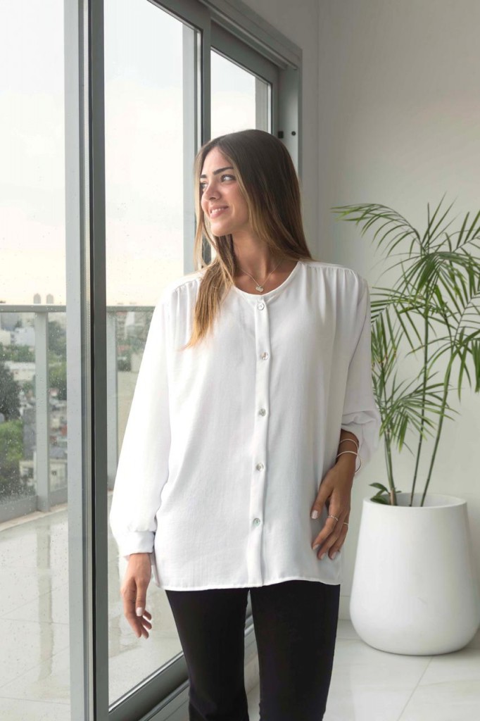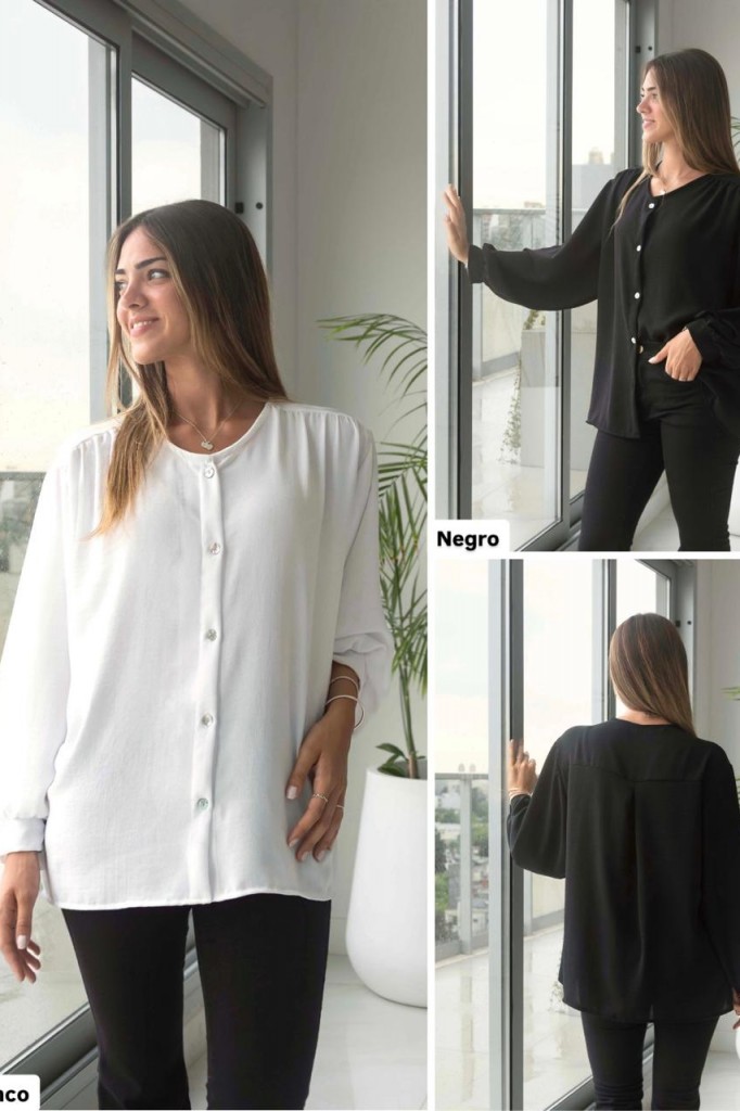 CAMISA PARIS TELA: cey TALLE UNICO: Contorno de busto: 130 cm. Sisa: 29 cm. Largo delantero: 70 cm. Largo trasero: 73 cm. ABARCA HASTA UN TALLE 6 APROX. Las medidas son aproximadas y pueden tener variaciones.
