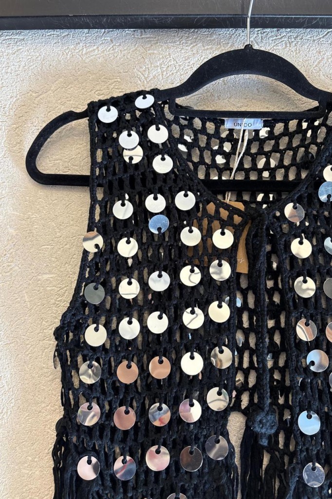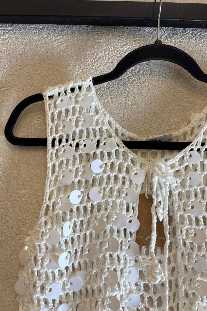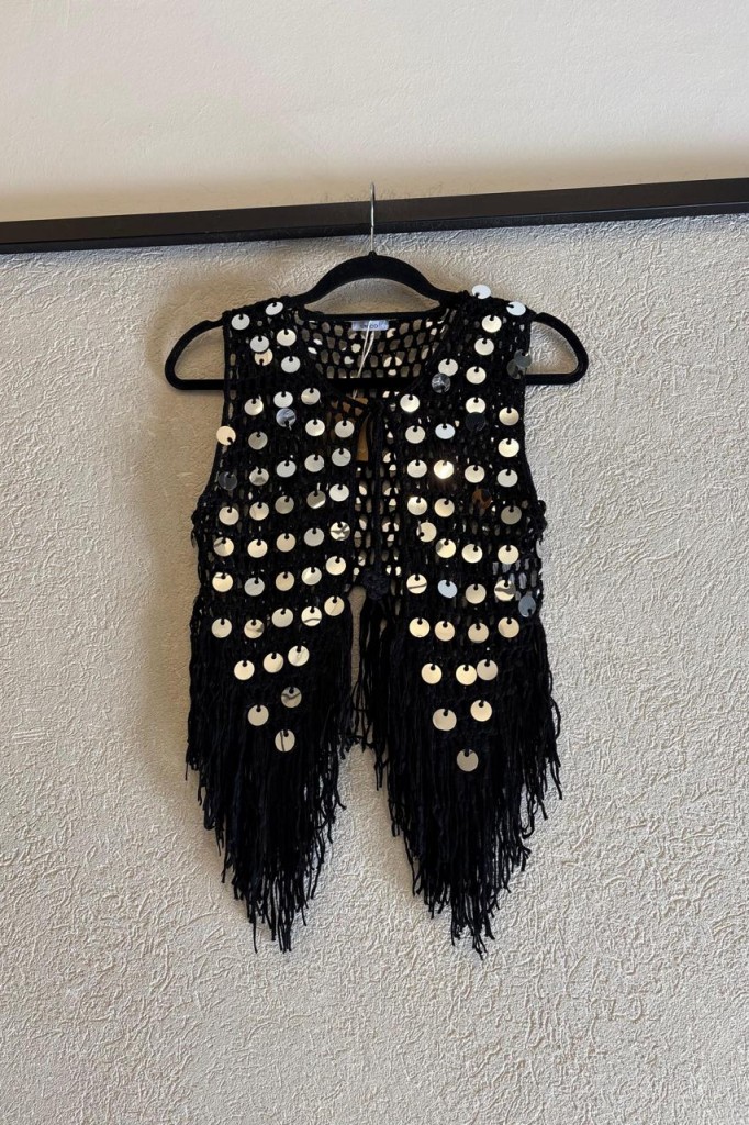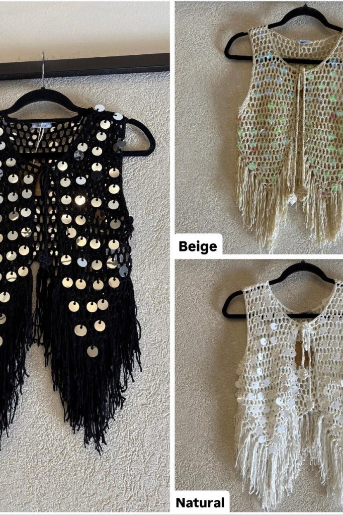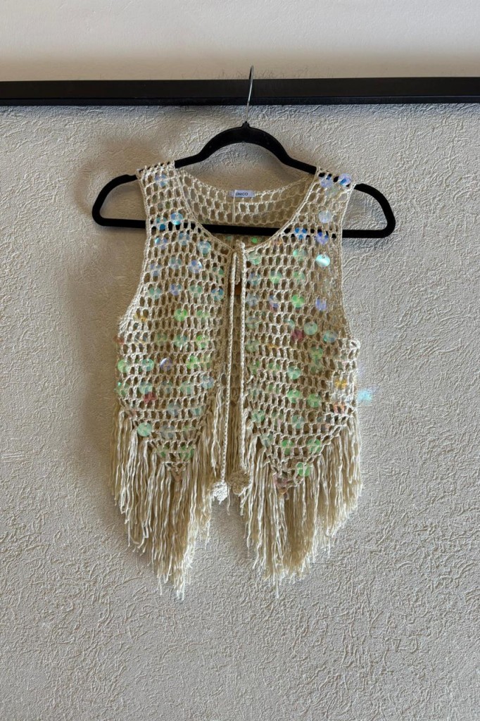 CHALECO FLECOS TALLE UNICO: Contorno de busto: 80 cm. Sisa: 25 cm. Largo: 45 cm Las medidas son aproximadas y pueden tener variaciones