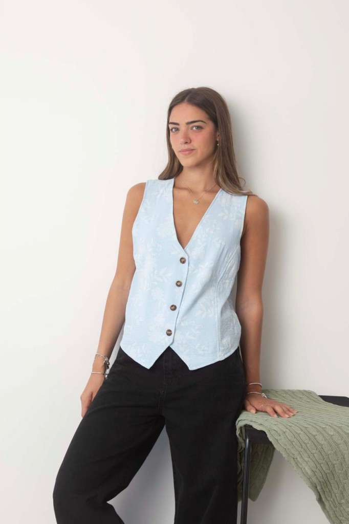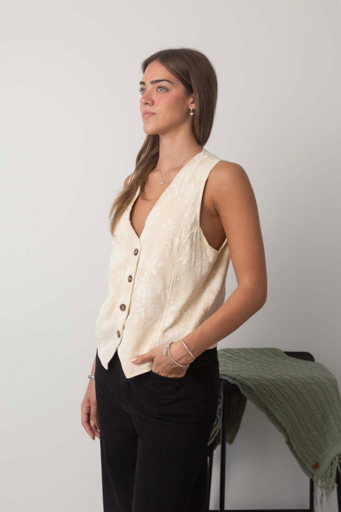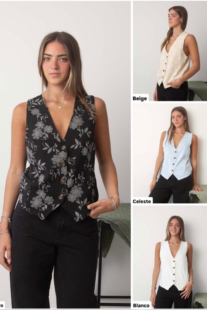 CHALECO VENECIA TELA: fake brodery TALLE UNICO: Contorno de busto: 96 cm. Sisa: 27 cm. Largo: 60 cm. Abarca hasta un 4 aprox. Las medidas son aproximadas y pueden tener variaciones.