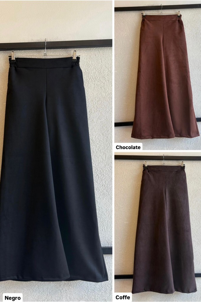 MAXI PALAZO GAMUZA Tela: gamuza TALLE M: abarca hasta un 38/40 aprox. TALLE L: abarca hasta un 42/44 aprox. TALLE XL: abarca hasta un 46/48 aprox. TALLE XXL: abarco hasta un 48/50 aprox. Las medidas son aproximadas y pueden tener variaciones