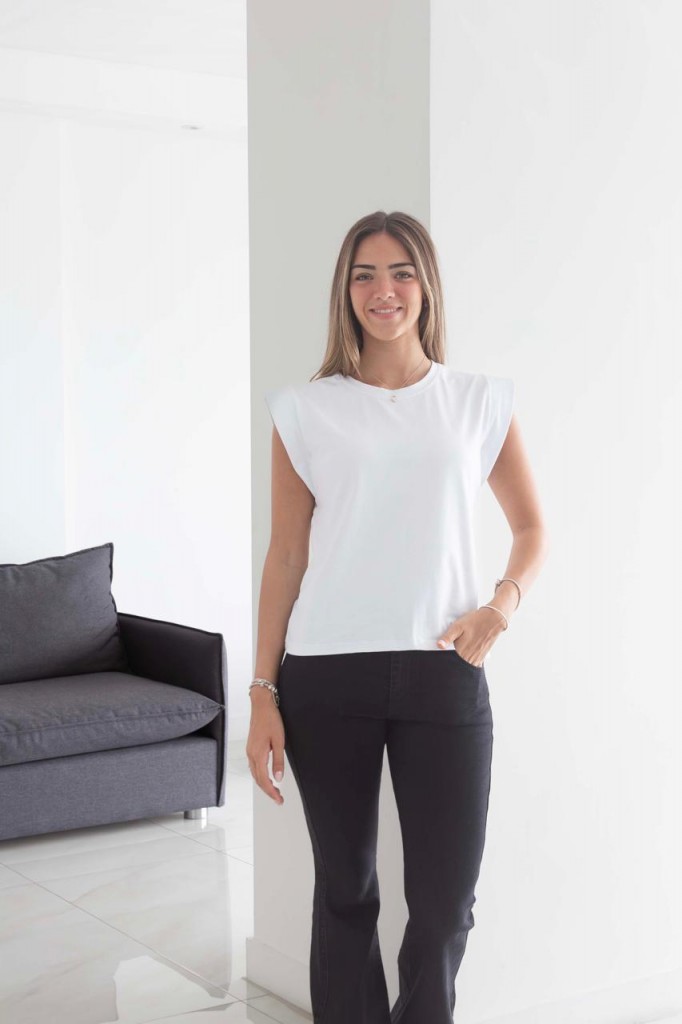 MUSCULOSA MIKI TELA: Algodón con lycra TALLE 3: Contorno de busto: 94 cm. Sisa: 26 cm. Largo: 57 cm TALLE 5: Contorno de busto: 96 cm. Sisa: 26 cm. Largo: 60 cm Las medidas son aproximadas y pueden tener variaciones