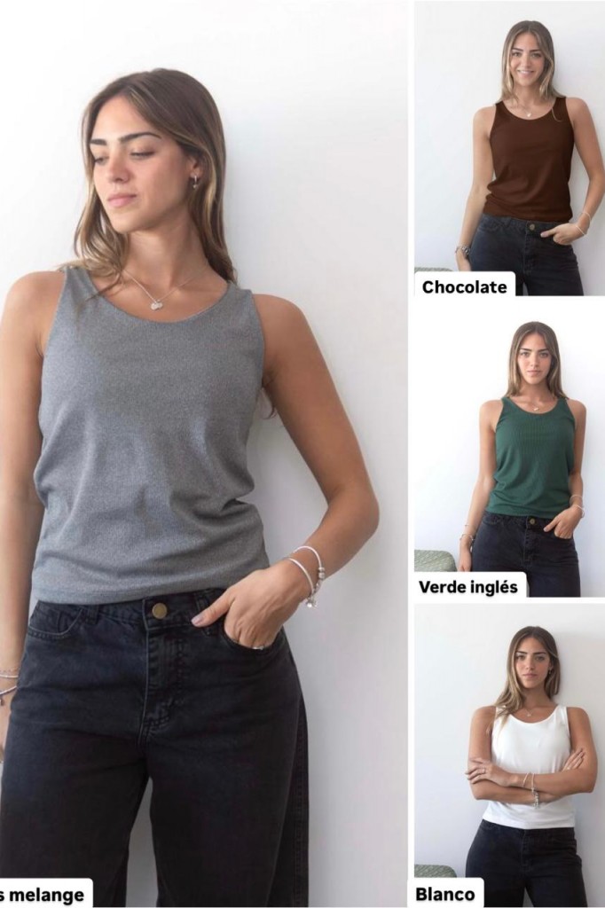 MUSCULOSA MOLY TELA: micro morley TALLE 3: Contorno de busto: 80 cm. Sisa: 22 cm. Largo: 56 cm TALLE 5: Contorno de busto: 92 cm. Sisa: 25 cm. Largo: 61 cm Las medidas son aproximadas y pueden tener variaciones
