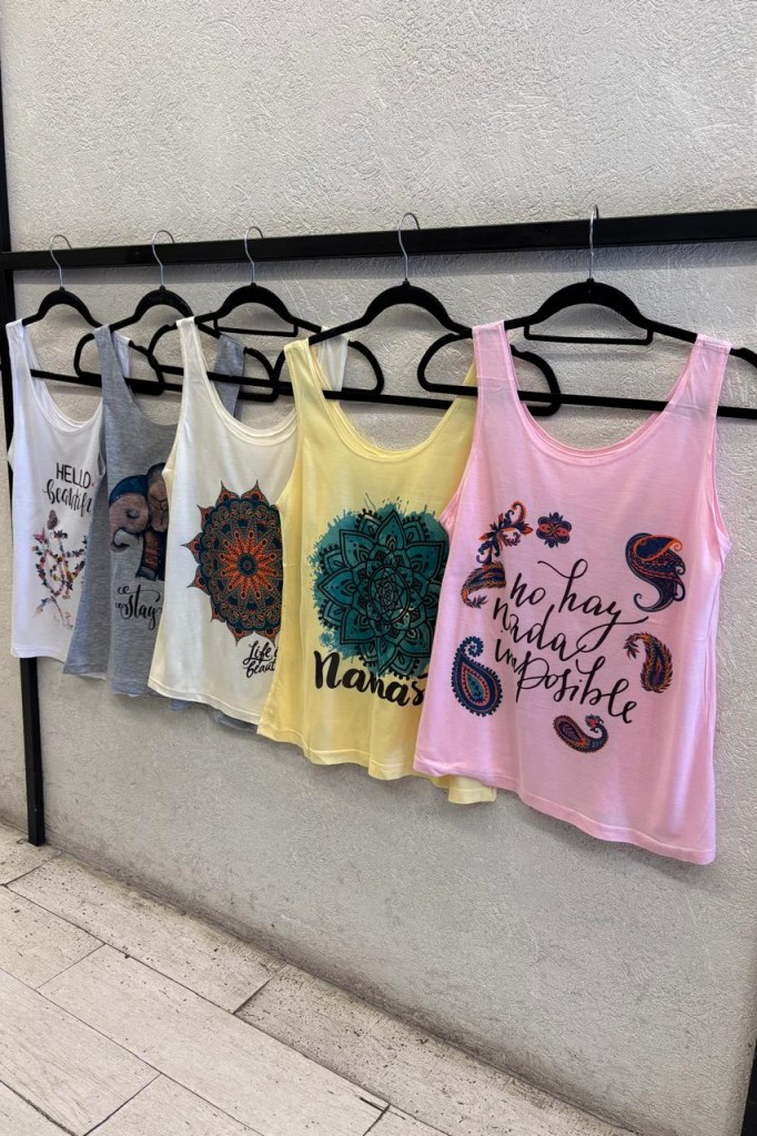 MUSCULOSA SUBLIMADA TELA: spum EL PACK INCLUYE 5 UNIDADES EN COLORES Y ESTAMPAS SURTIDAS Abarca hasta un 3 aprox.