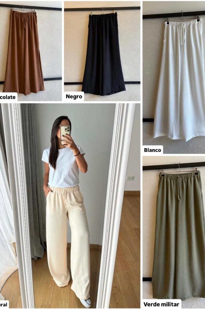 PALAZO CREP VINTAGE TELA: crep vintage TALLE M: abarca hasta un 38/40 aprox. TALLE L: abarca hasta un 42/44aprox. TALLE XL: abarca hasta un 46/48 aprox Las medidas son aproximadas y pueden tener variaciones.