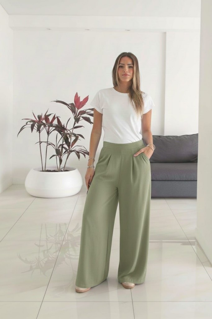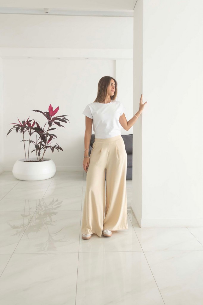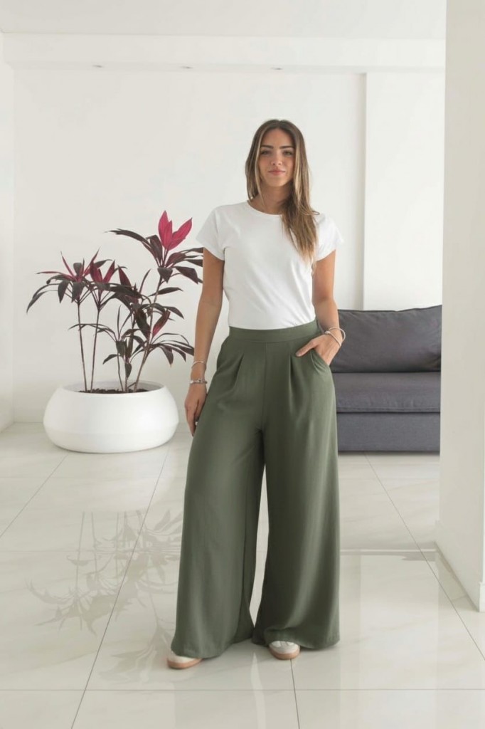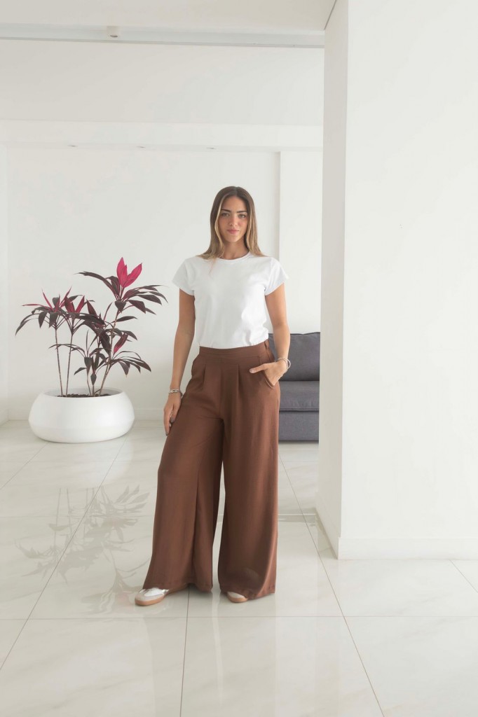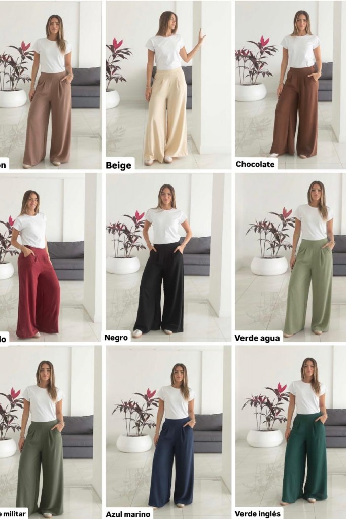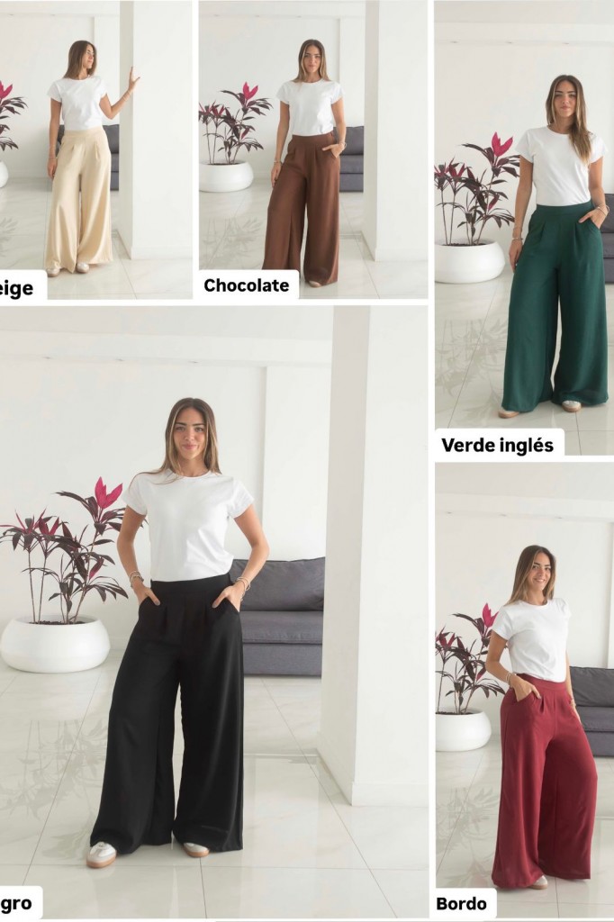 PALAZO DE CEY TELA: cey TALLE 3: abarca hasta un 38/40 aprox. TALLE 5: abarca hasta un 42/44aprox. Las medidas son aproximadas y pueden tener variaciones.