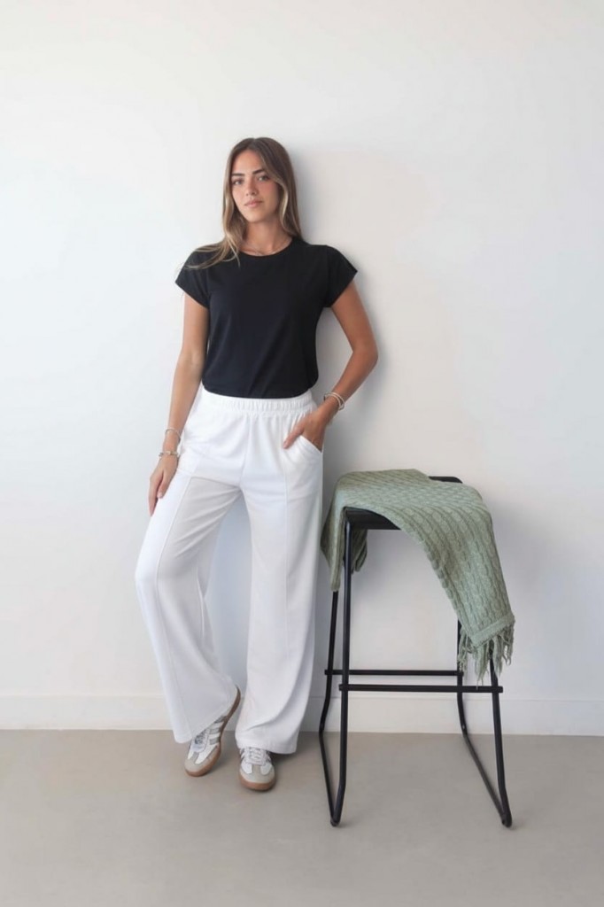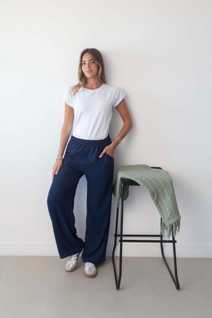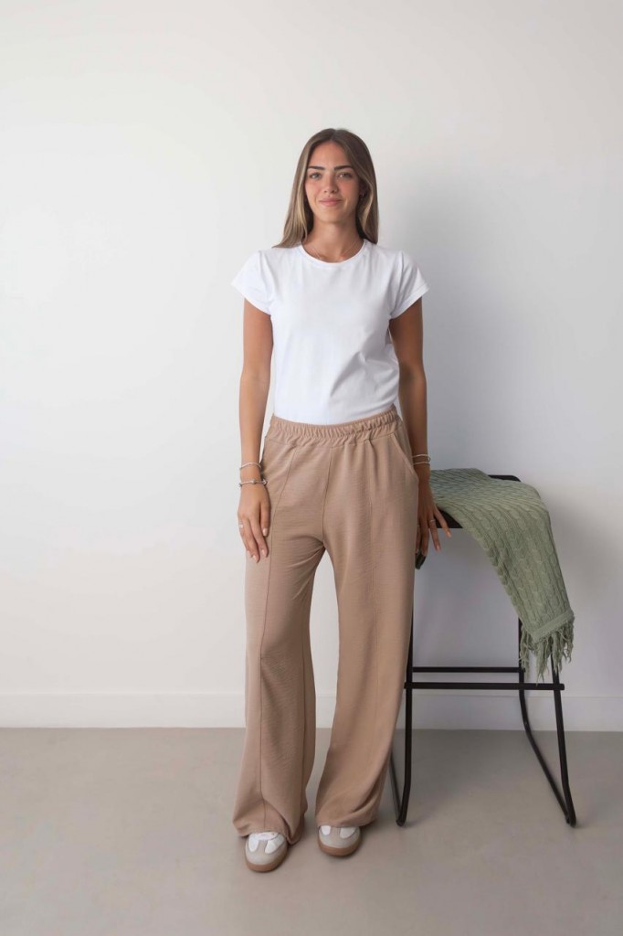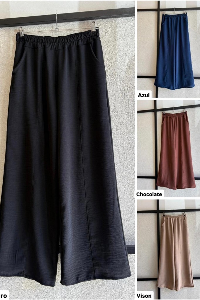PALAZO DE CEY CON COSTURA TELA: cey TALLE 3: abarca hasta un 40/42 aprox. TALLE 5: abarca hasta un 44/46 aprox. Las medidas son aproximadas y pueden tener variaciones.