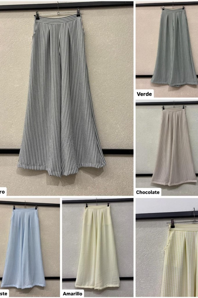 PALAZO DE CEY TELA: cey rayado TALLE 3: abarca hasta un 38/40 aprox. TALLE 5: abarca hasta un 42/44 aprox. Las medidas son aproximadas y pueden tener variaciones.