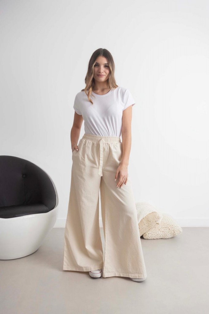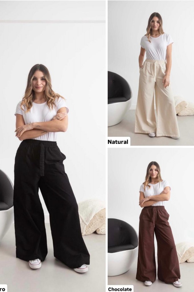 PALAZO DE GABARDINA TELA: gabardina TALLE M: abarca hasta un 40/42 aprox. TALLE L: abarca hasta un 42/44 aprox. TALLE XL: abarca hasta un 44/46 aprox Las medidas son aproximadas y pueden tener variaciones.