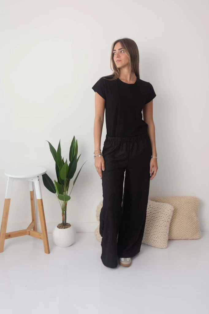 PALAZO DE LINO BORDADO TELA: Lino bordado TALLE M: abarca hasta un 38 aprox. TALLE L: abarca hasta un 40 aprox. TALLE XL: abarca hasta un 42 aprox. Las medidas son aproximadas y pueden tener variaciones.