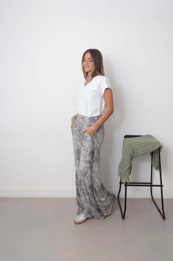 PALAZO DE MORLEY BATIK TELA: morley TALLE UNICO: Contorno de cintura: 74 cm. contorno de cadera: 122 cm. Largo: 110 cm. ABARCA HASTA UN TALLE 48 APROX. Las medidas son aproximadas y pueden tener variaciones.