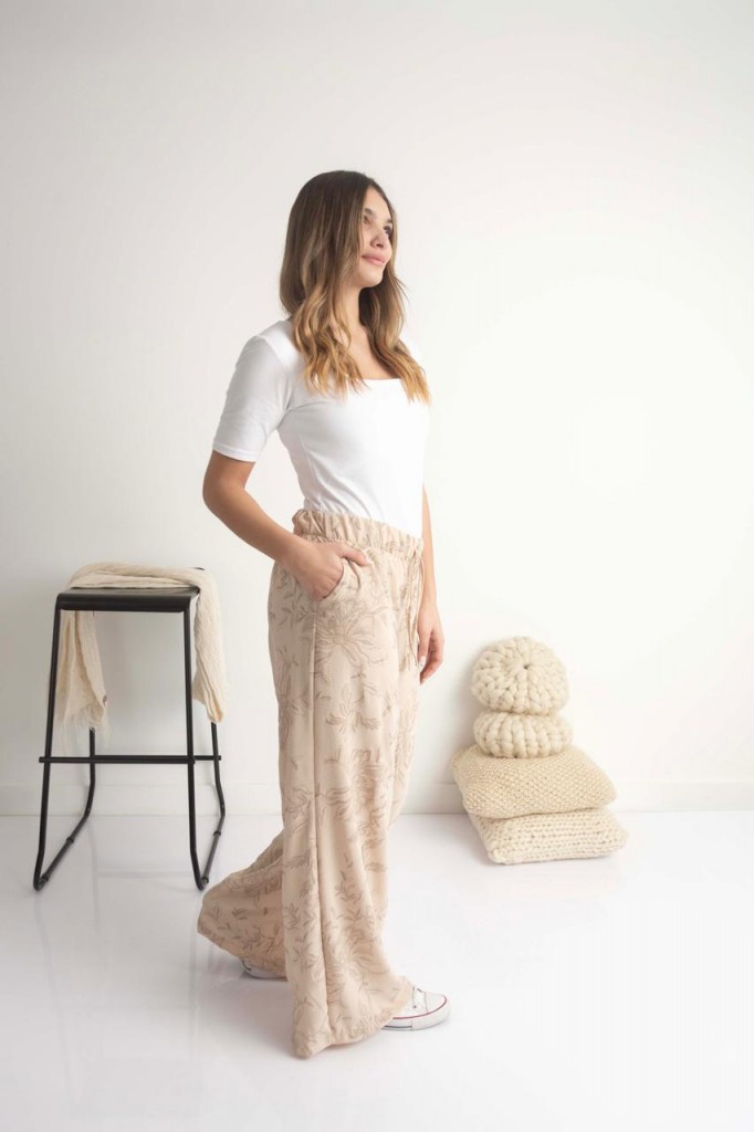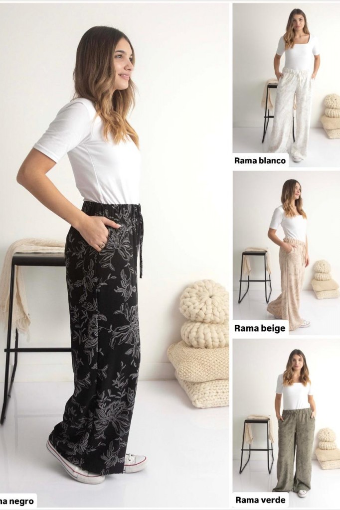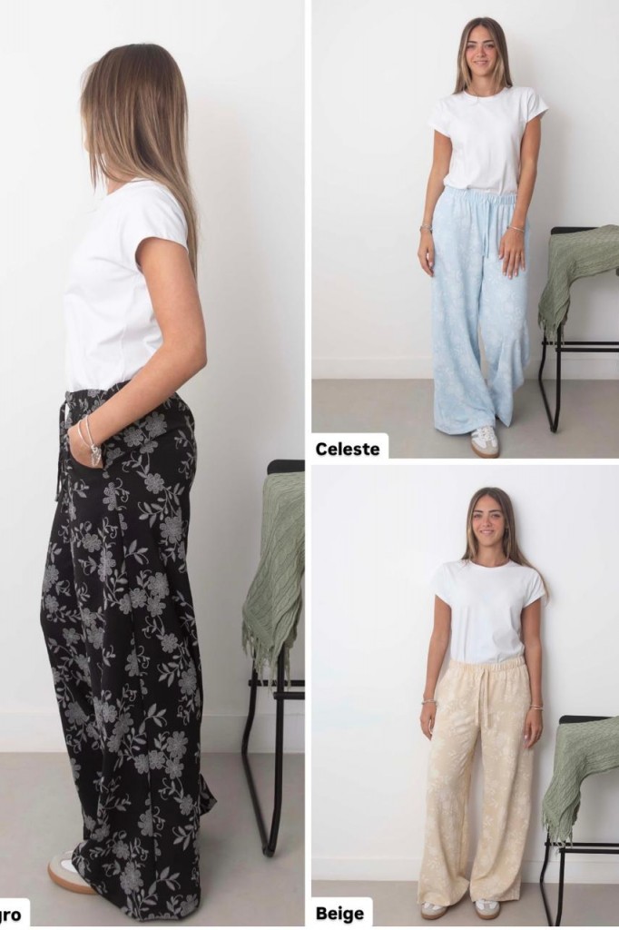 PALAZO SIMIL BRODERY TELA: fake brodery TALLE M: abarca hasta un 38/40 aprox. TALLE L: abarca hasta un 42/44aprox. TALLE XL: abarca hasta un 46/48 aprox Las medidas son aproximadas y pueden tener variaciones.