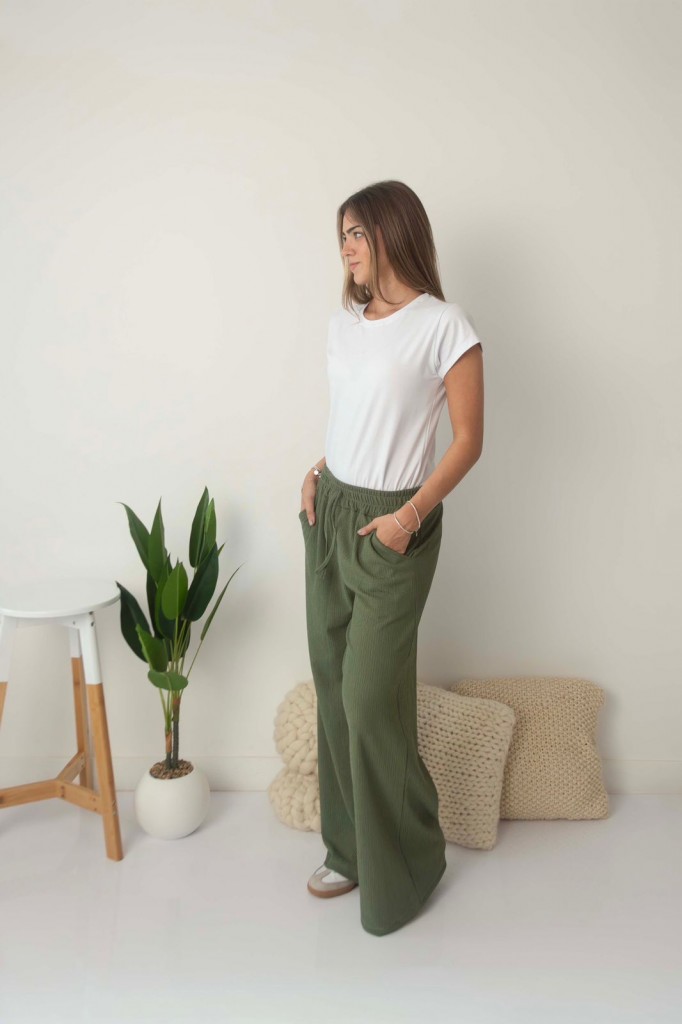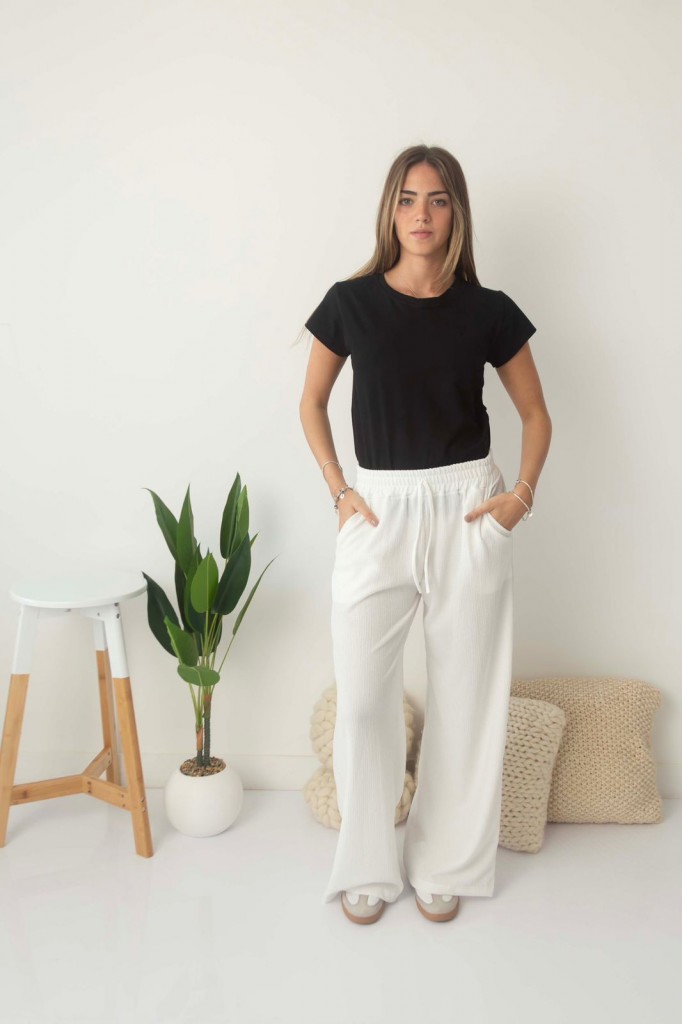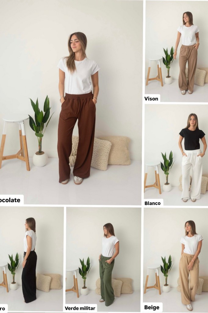 PALAZO TEXAS TELA: mini hawai TALLE UNICO: Contorno de cintura: 72 cm. Contorno de cadera: 61 cm. Largo: 105 cm. Abarca hasta un 44/46 aprox. Las medidas son aproximadas y pueden tener variaciones.