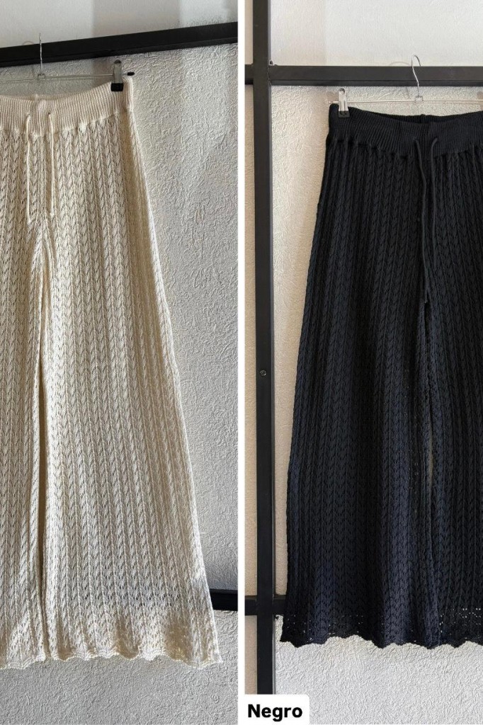 PANTALON CALADO TELA: hilo TALLE UNICO: Contorno de cintura: 68 cm. Contorno de cadera: 106 cm. Largo: 97 cm. Abarca hasta un 4/5 aprox. medidas sin estirar Las medidas son aproximadas y pueden tener variaciones.