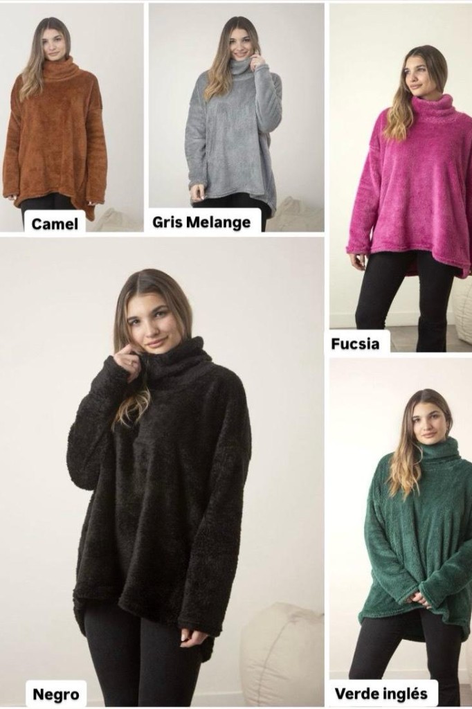 POLERA LULU PELUCHE TELA: corderito bifaz TALLE UNICO: Contorno de busto: 136cm. Sisa: 24 cm. Largo delantero: 71cm. Largo trasero: 76cm ABARCA HASTA UN TALLE 6 APROX. Las medidas son aproximadas y pueden tener variaciones.