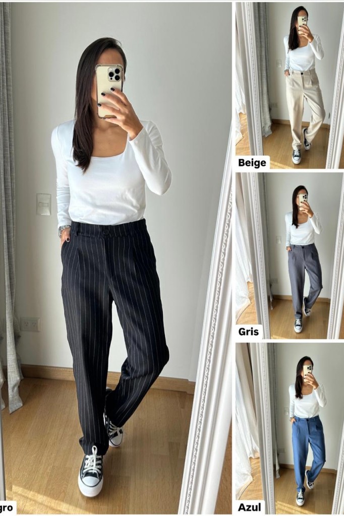 PANTALON SASTRERO CHUPIN RAYADO TELA: sastrero rayado TALLE 1: abarca hasta un 38/40 aprox. TALLE 2: abarca hasta un 42/44 aprox. TALLE 3: abarca hasta un 44/46 aprox. TALLE 4: abarca hasta un 46/48 aprox.
