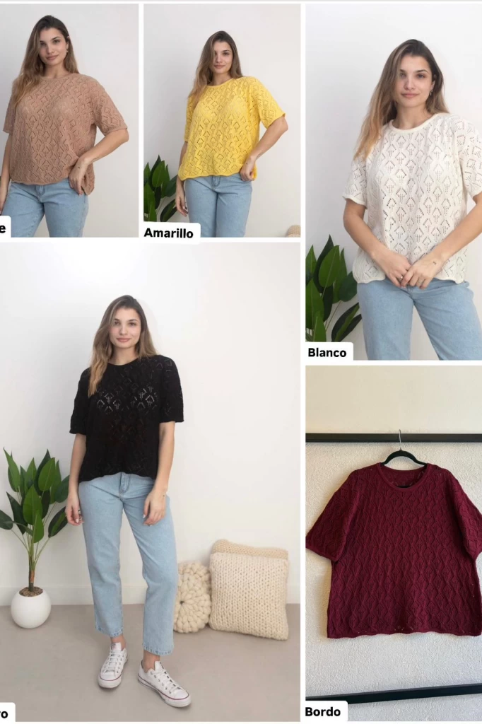 PROMO REMERA CALU TELA: hilo bremer TALLE UNICO: Contorno de busto: 124 cm. Sisa: 23 cm. Largo: 59 cm Abarca hasta un 5 aprox. Las medidas son aproximadas y pueden tener variaciones