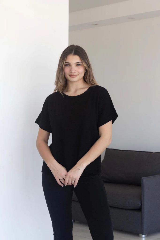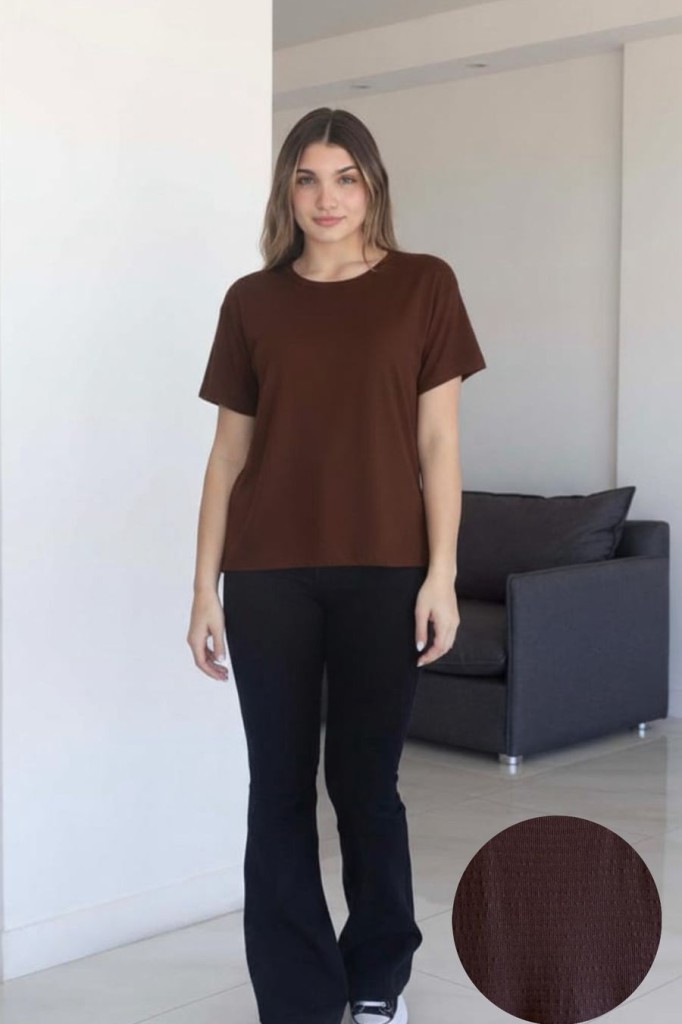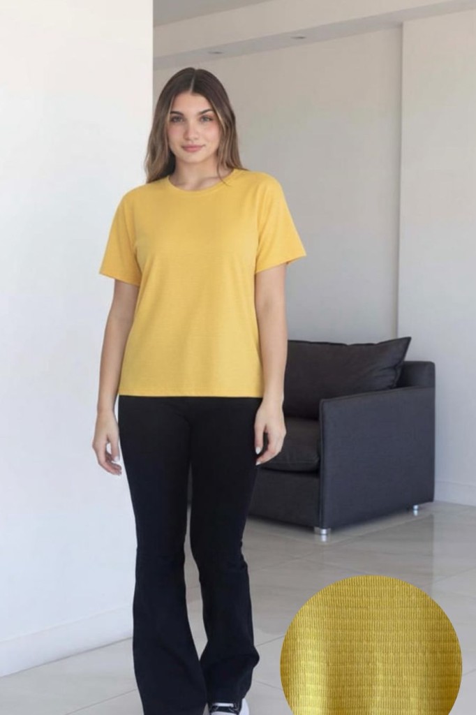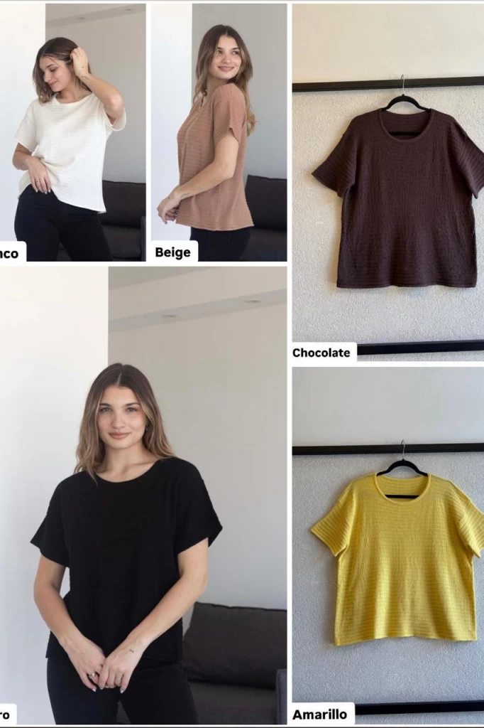 PROMO REMERA MERY TELA: hilo bremer TALLE UNICO: Contorno de busto: 116 cm. Sisa: 24 cm. Largo: 58 cm Abarca hasta un 5 aprox. Las medidas son aproximadas y pueden tener variaciones