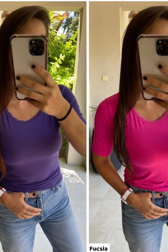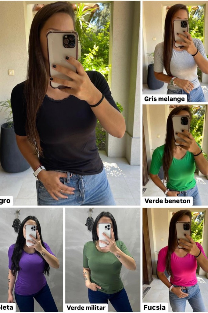 PROMO REMERA PUNTILLA TELA: modal TALLE 3: Contorno de busto: 80 cm. Sisa: 20 cm. Largo: 59 cm. TALLE 5: Contorno de busto: 88 cm. Sisa: 22 cm. Largo: 63 cm. Las medidas son aproximadas y pueden tener variaciones.