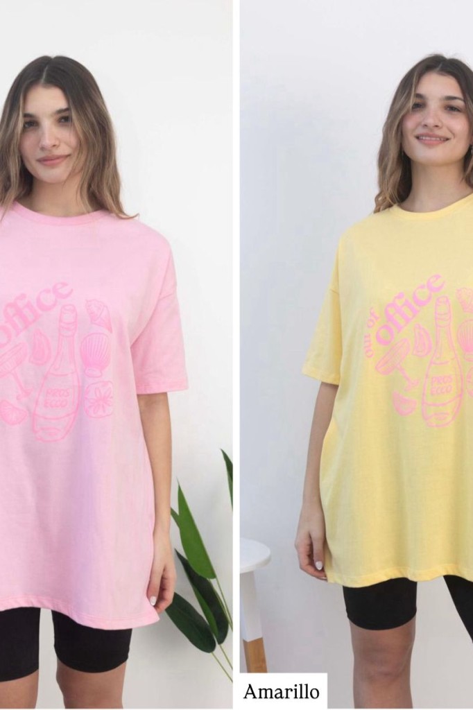 PROMO REMERON LUISA ESTAMPA: OFFICE TELA: Jersey peinado TALLE UNICO: Contorno de busto: 126 cm. Sisa: 23 cm. Largo: 80 cm Abarca hasta un 6/7 aprox. Las medidas son aproximadas y pueden tener variaciones