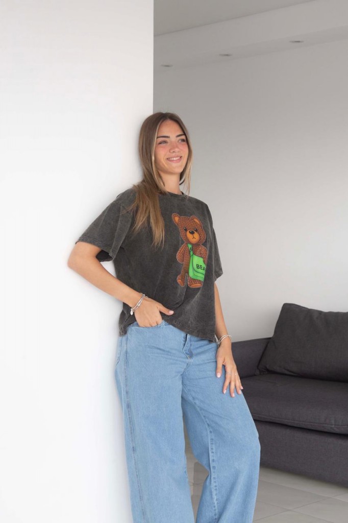 REMERA BOX ESTAMPADA: OSO BEAR TELA: jersey TALLE UNICO: Contorno de busto: 120 cm. Sisa: 25 cm. Largo: 58 cm. Abarca hasta un talle 5 aprox. Las medidas son aproximadas y pueden tener variaciones
