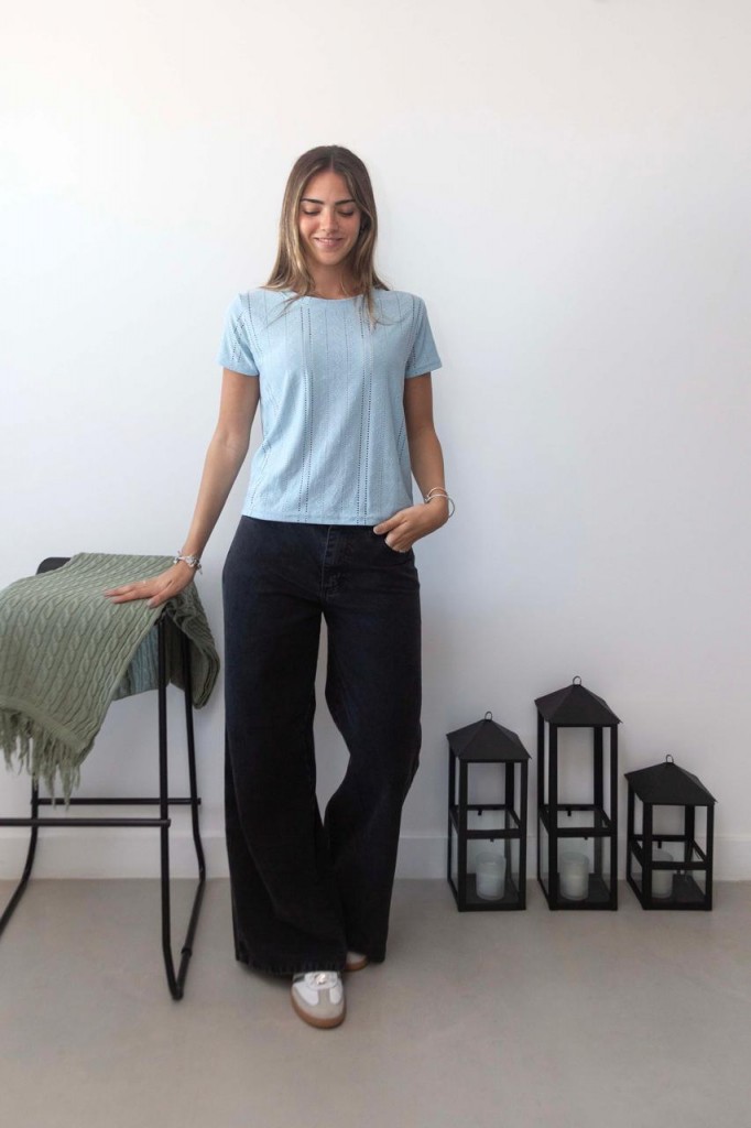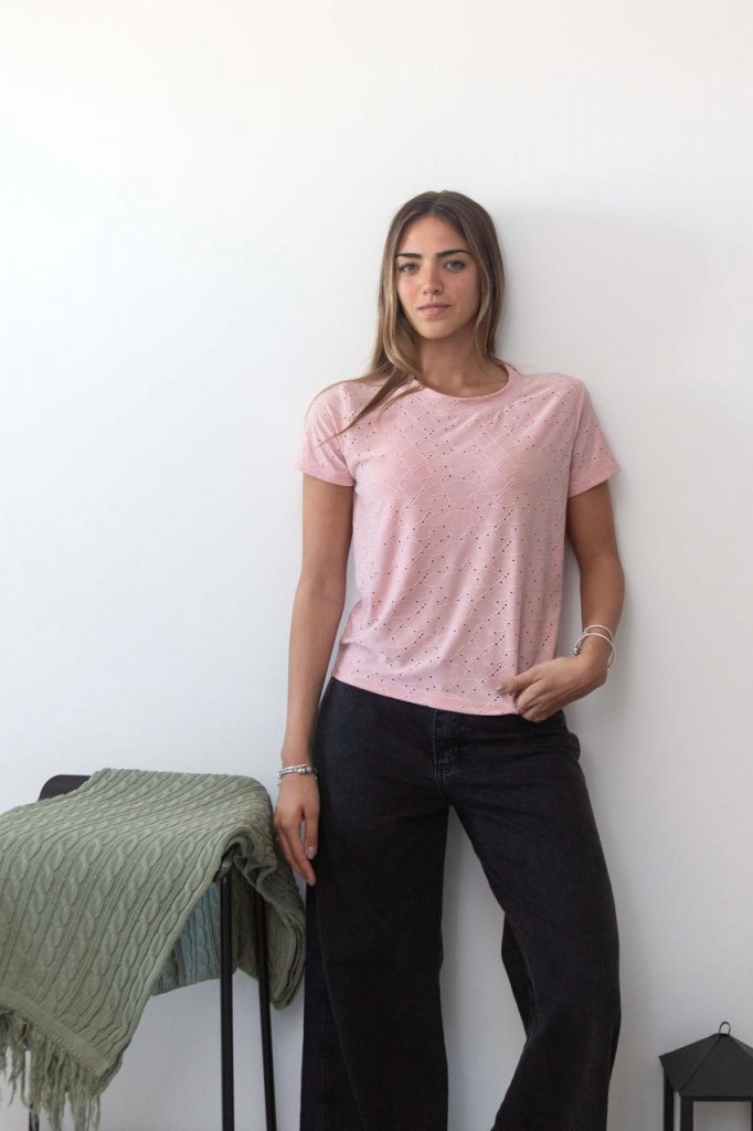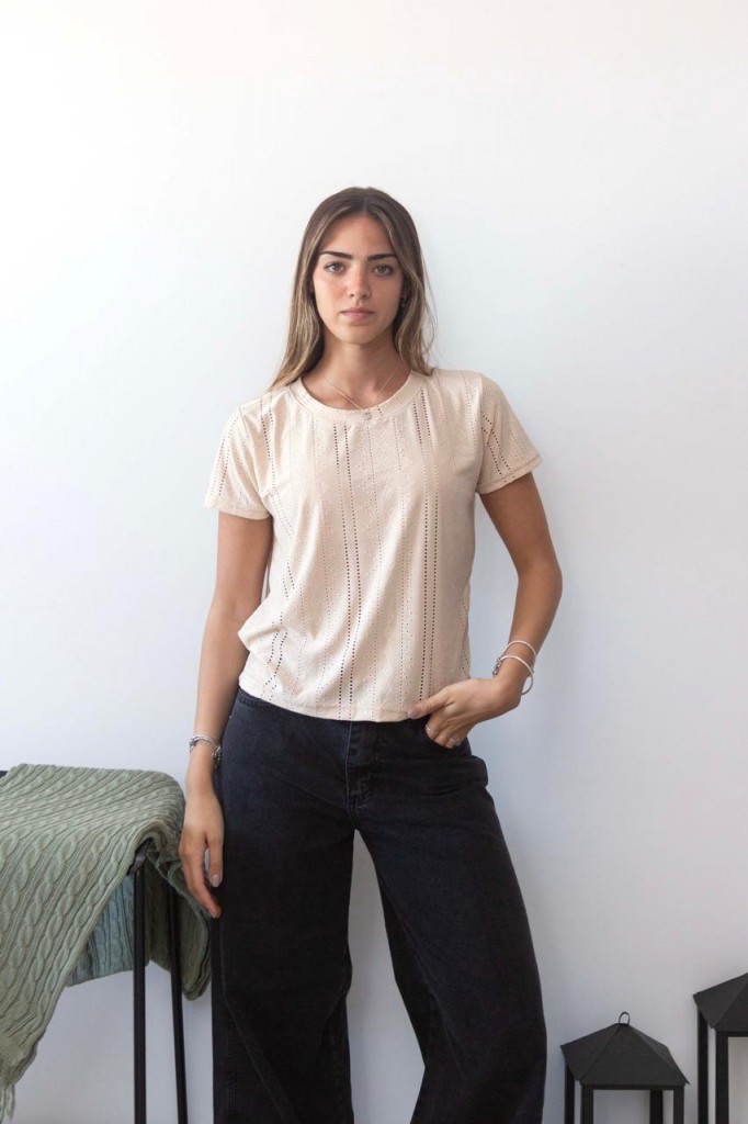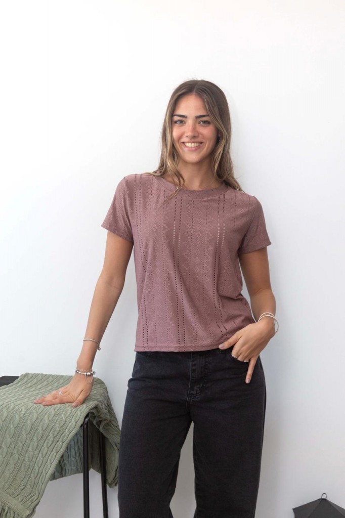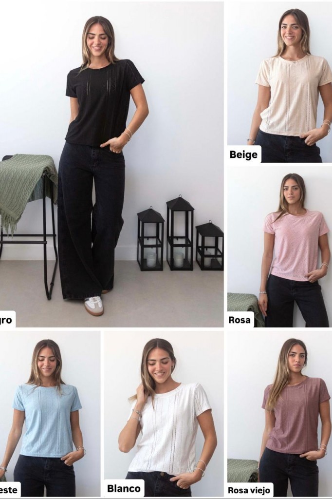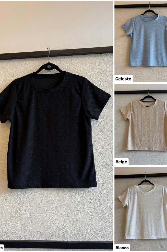 REMERA BRODERI TELA: broderi TALLE 3: Contorno de busto: 96 cm. Sisa: 21 cm. Largo: 56 cm TALLE 5: Contorno de busto: 104 cm. Sisa: 23 cm. Largo: 60 cm El diseño de cada color puede variar ya que la tela es importada Las medidas son aproximadas y pueden tener variaciones