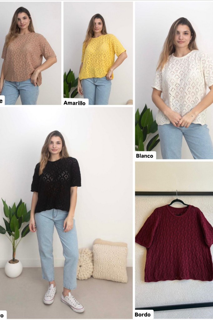 REMERA CALU TELA: hilo bremer TALLE UNICO: Contorno de busto: 124 cm. Sisa: 23 cm. Largo: 59 cm Abarca hasta un 5 aprox. Las medidas son aproximadas y pueden tener variaciones