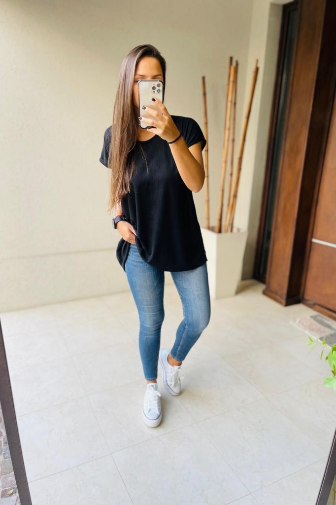 REMERA LAU TELA: morley TALLE UNICO : Contorno de busto: 124 cm. Sisa:19 cm. Largo delantero: 69 cm. Largo trasero: 75 cm. Abarca hasta un 5/6 aprox. Las medidas son aproximadas y pueden tener variaciones.