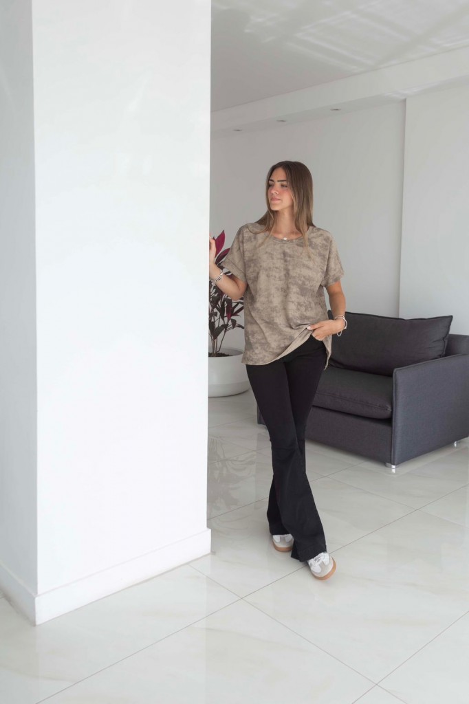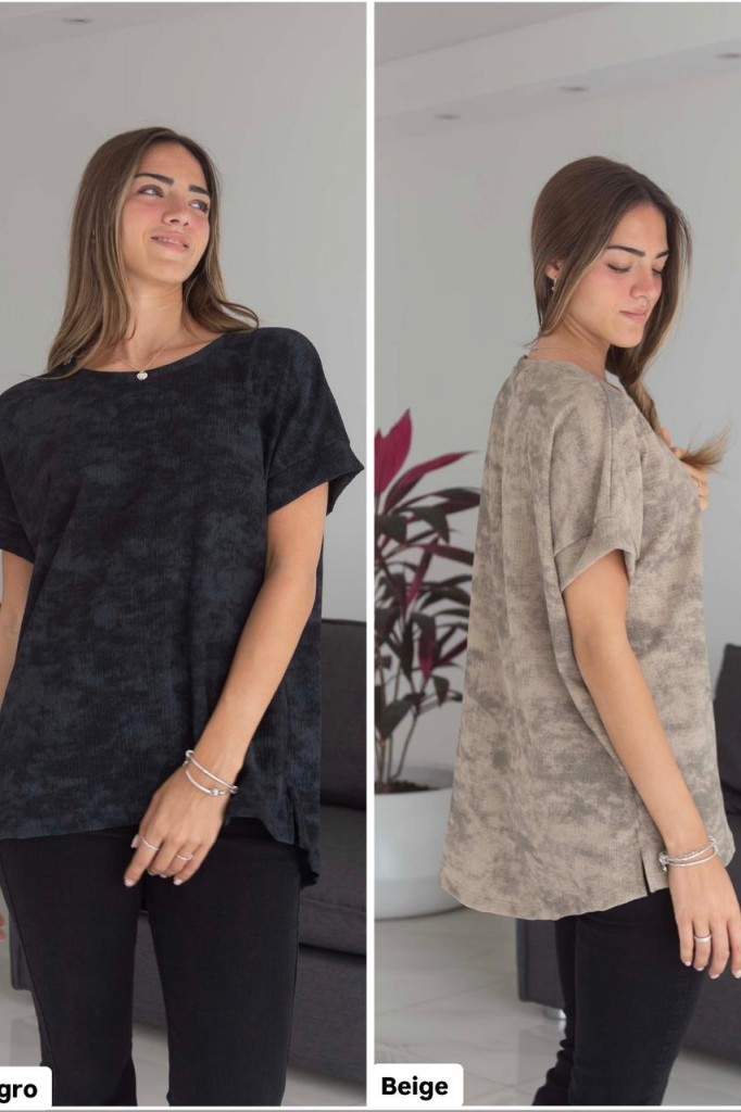 REMERA NINA ESTAMPADA TELA: Hawai estampado TALLE UNICO: Contorno de busto: 130 cm. Sisa: 24 cm. Largo delantero: 67 cm. Largo trasero 75 cm Abarca hasta un 7/8 aprox. Las medidas son aproximadas y pueden tener variaciones