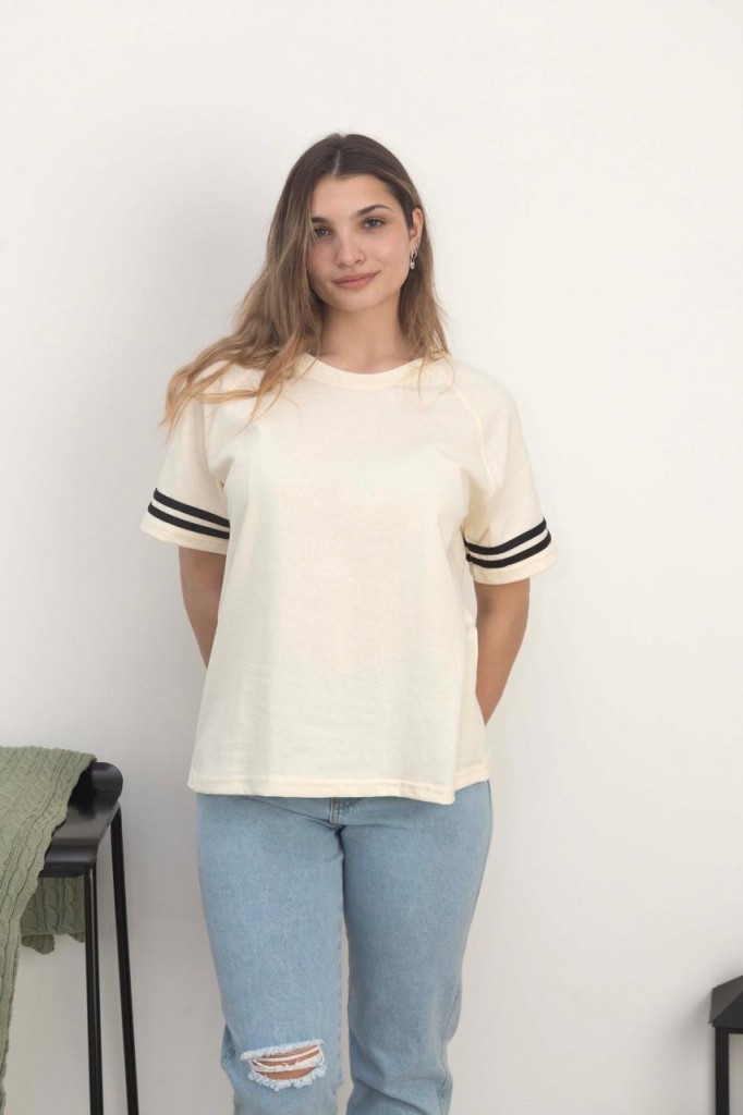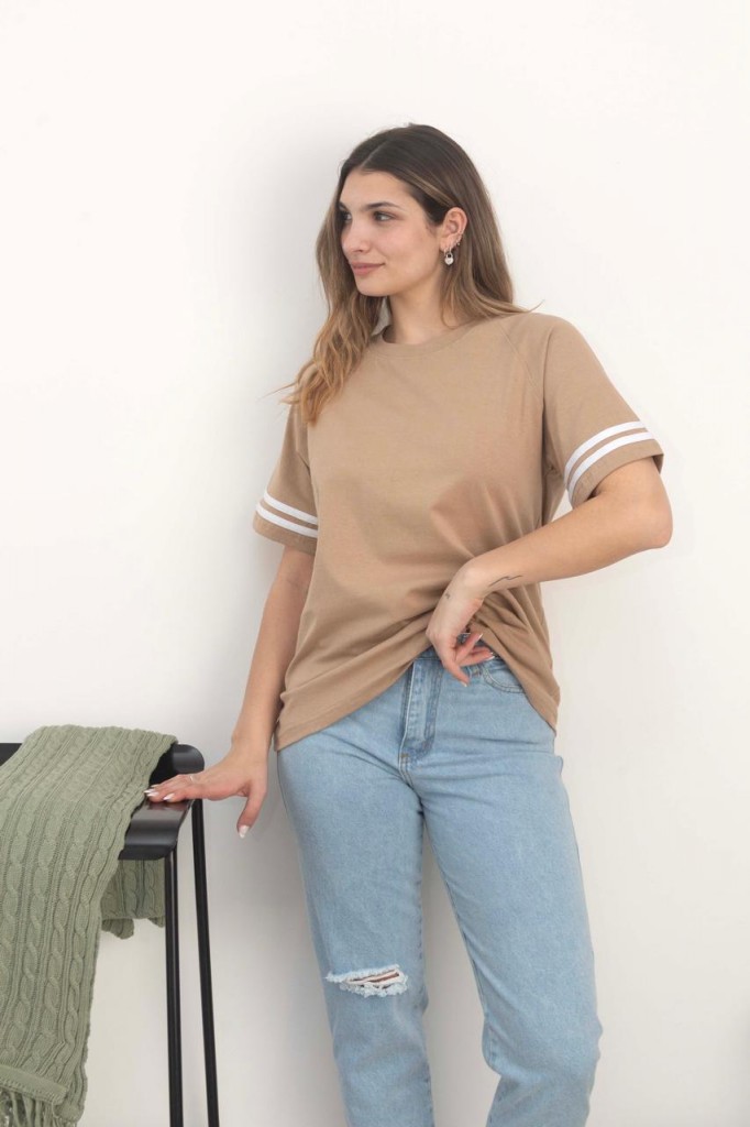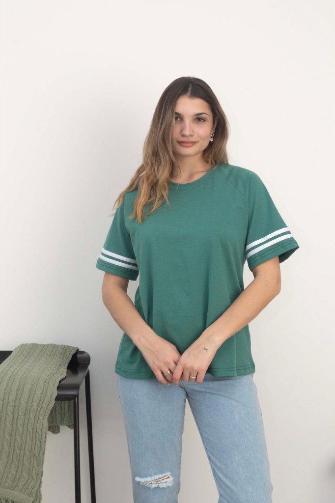 REMERA VERA TELA: jersey cardado TALLE UNICO: Contorno de busto: 108 cm. Sisa: 27 cm. Largo: 64 cm Abarca hasta un talle 4/5 aprox. Las medidas son aproximadas y pueden tener variaciones