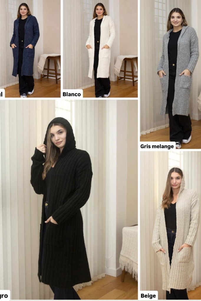 SACO CLOE TELA: LANA TALLE UNICO: Contorno de busto: 120 cm. Sisa: 25 cm. Largo: 110 cm ABARCA HASTA UN TALLE 5 APROX. Las medidas son aproximadas y pueden tener variaciones.