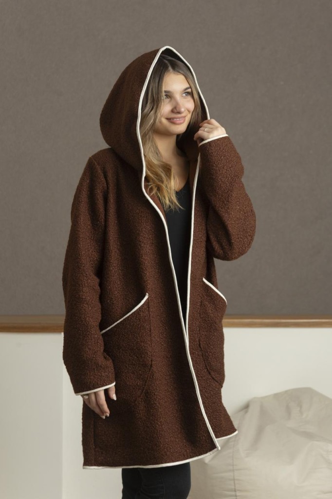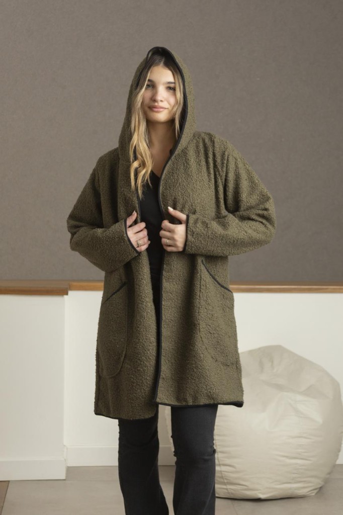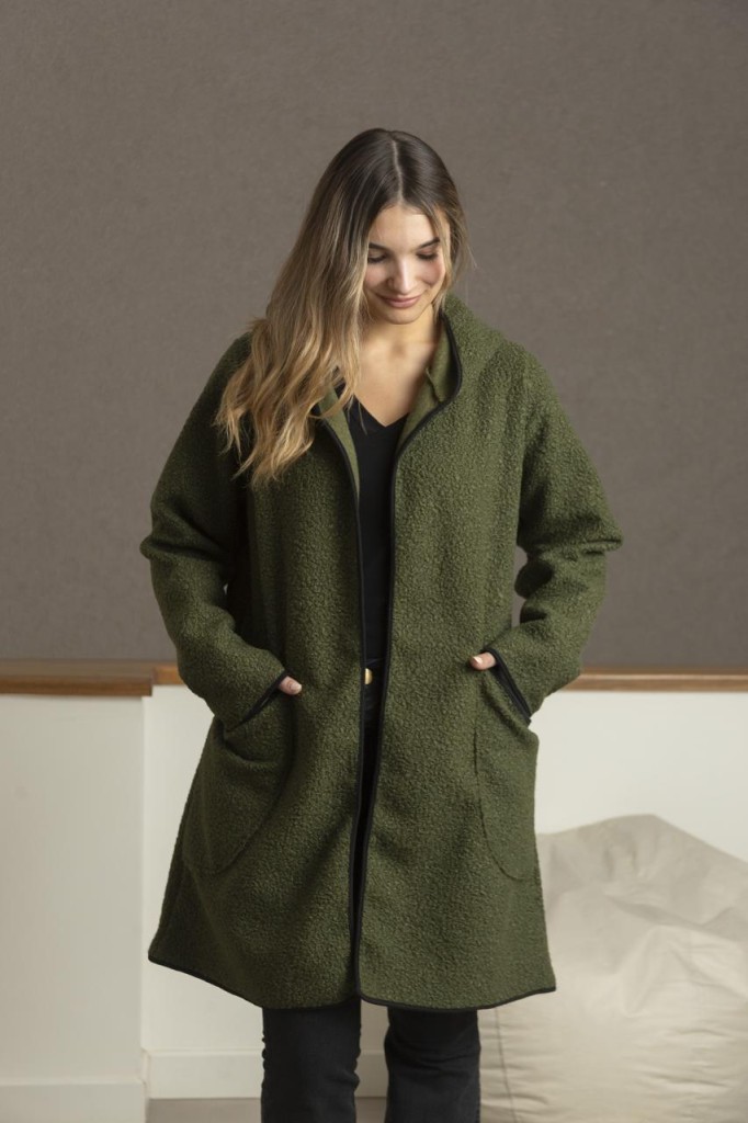 SACO CURLY CON VIVO TELA: curly TALLE UNICO: Contorno de busto: 114cm. Sisa: 30cm. Largo: 87cm. ABARCA HASTA UN TALLE 5 APROX. Las medidas son aproximadas y pueden tener variaciones.