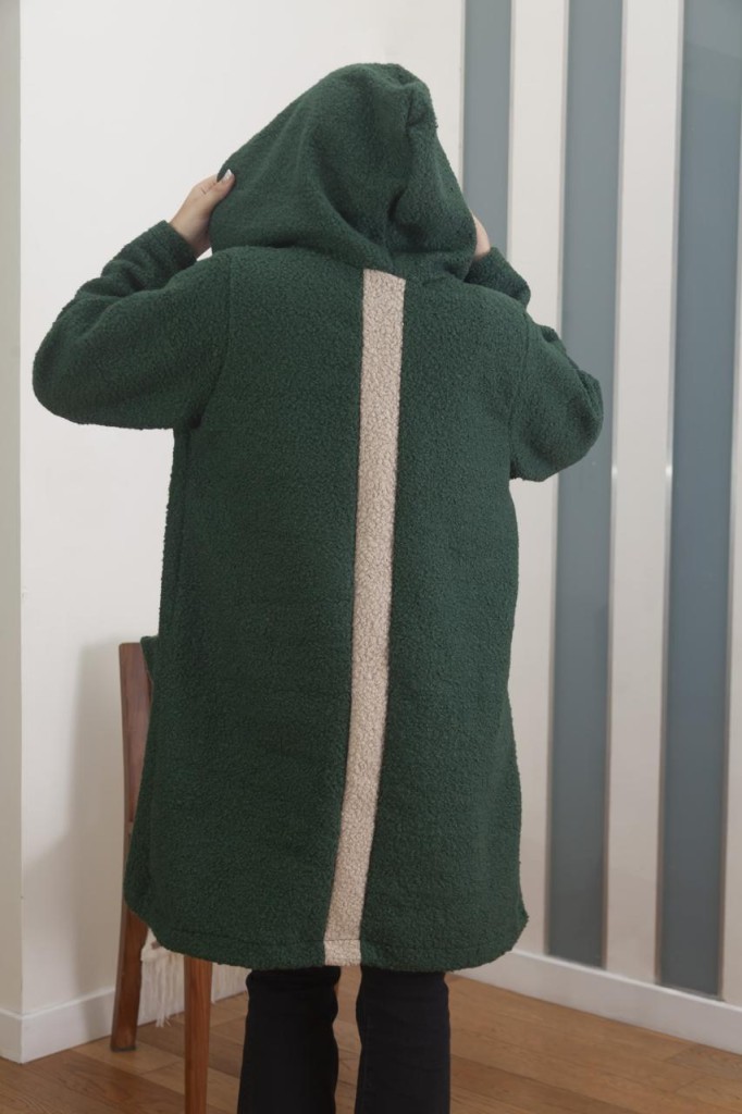SACO DE PAÑO BUCLE COMBINADO TELA: paño bucle TALLE UNICO: Contorno de busto: 120 cm. Sisa:30 cm. Largo: 90 cm. Abarca hasta un 5 aprox. Las medidas son aproximadas y pueden tener variaciones.