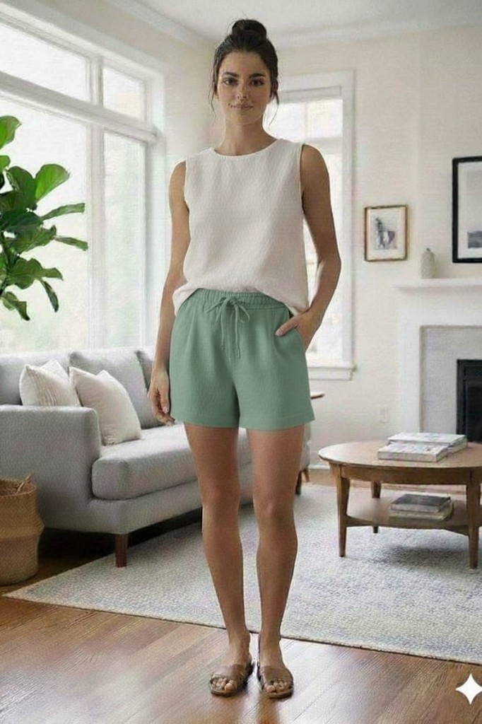 SHORT DE CEY TELA: Cey TALLE UNICO: Contorno de cintura: 76 cm. contorno de cadera: 96 cm. Largo: 40 cm. Abarca hasta un 44 aprox. Las medidas son aproximadas y pueden tener variaciones.