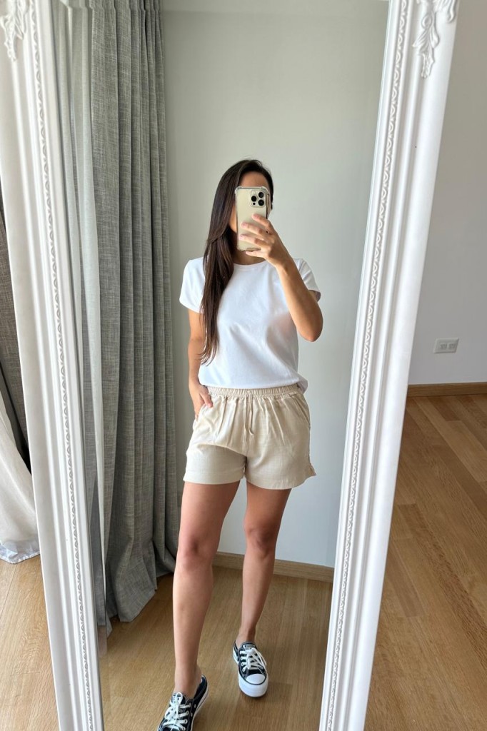 SHORT DE LINO MANU TELA: lino TALLE 3: abarca hasta un 40/42 aprox. TALLE 6: abarca hasta un 46/48 aprox. Las medidas son aproximadas y pueden tener variaciones.