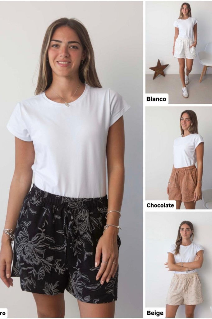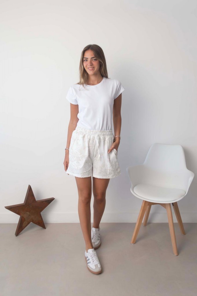 SHORT FAKE BRODERI TELA: fake broderi TALLE M: abarca hasta un 40 /42 aprox. TALLE L: abarca hasta un 42 /44 aprox. TALLE XL: abarca hasta un 44 /46 aprox. Debido al proceso de prelavado las medidas y tonos pueden variar.