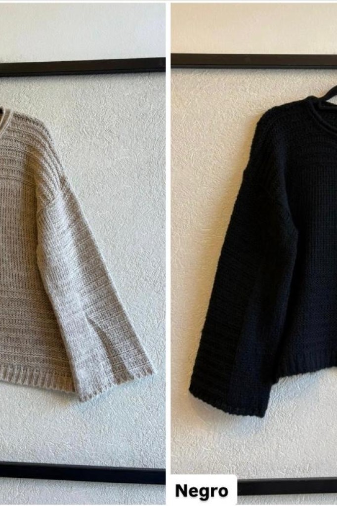 SWEATER CATALINA TELA: lana TALLE UNICO: Contorno de busto: 120 cm. Sisa: 25 cm. Largo: 66 cm. ABARCA HASTA UN TALLE APROX. Las medidas son aproximadas y pueden tener variacione