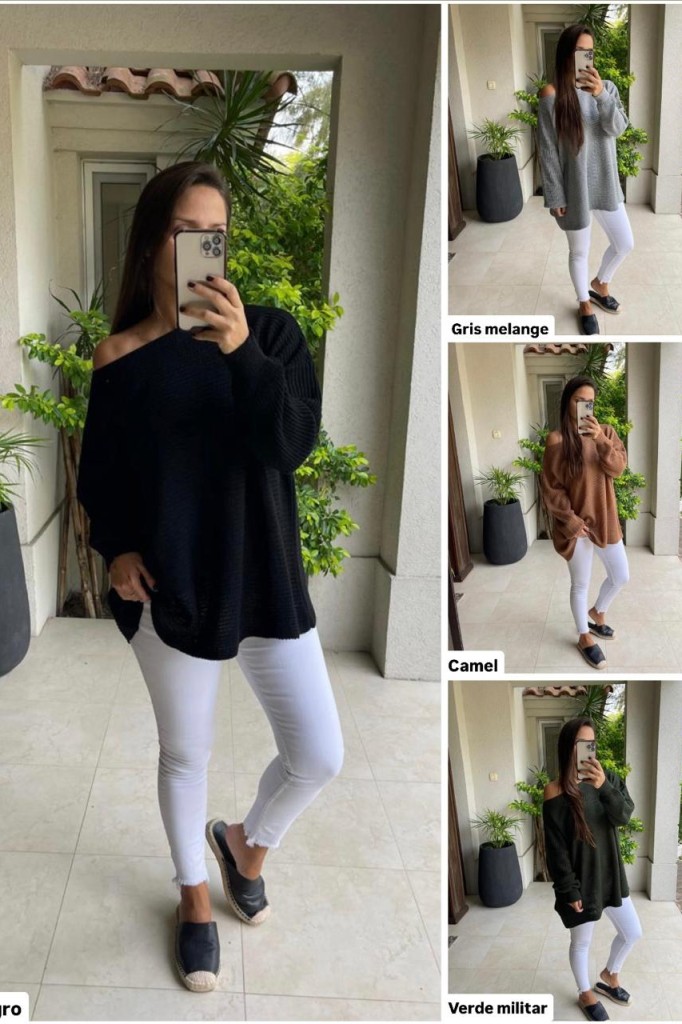 SWEATER CONSTANZA TELA: Lana TALLE UNICO: Contorno de busto: 140 cm. Sisa: 42 cm. Largo: 81 cm. Tiene cuello bote. Abarca hasta un 6/7 aprox. Las medidas son aproximadas y pueden tener variaciones