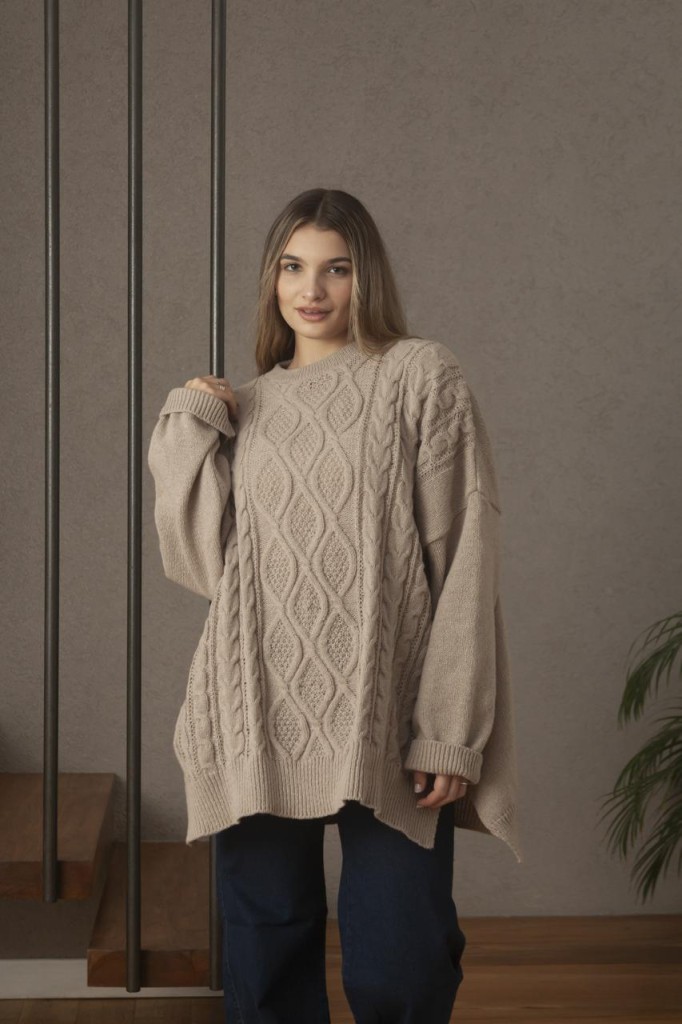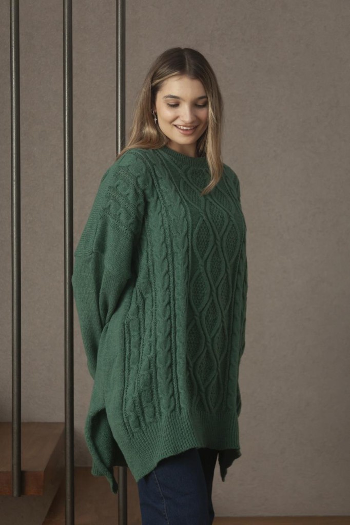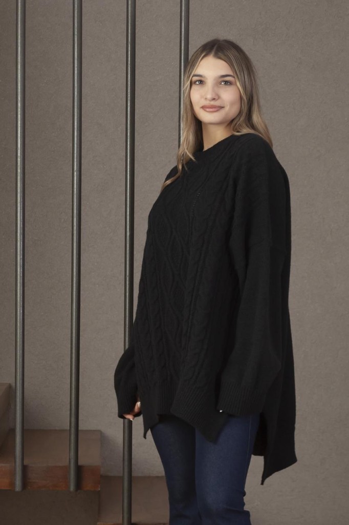SWEATER DELFI TELA: lana TALLE UNICO: Contorno de busto: 160 cm. Sisa: 31 cm. Largo delantero: 73 cm. Largo trasero: 85 cm. ABARCA HASTA UN TALLE 8/9 APROX. Las medidas son aproximadas y pueden tener variaciones.
