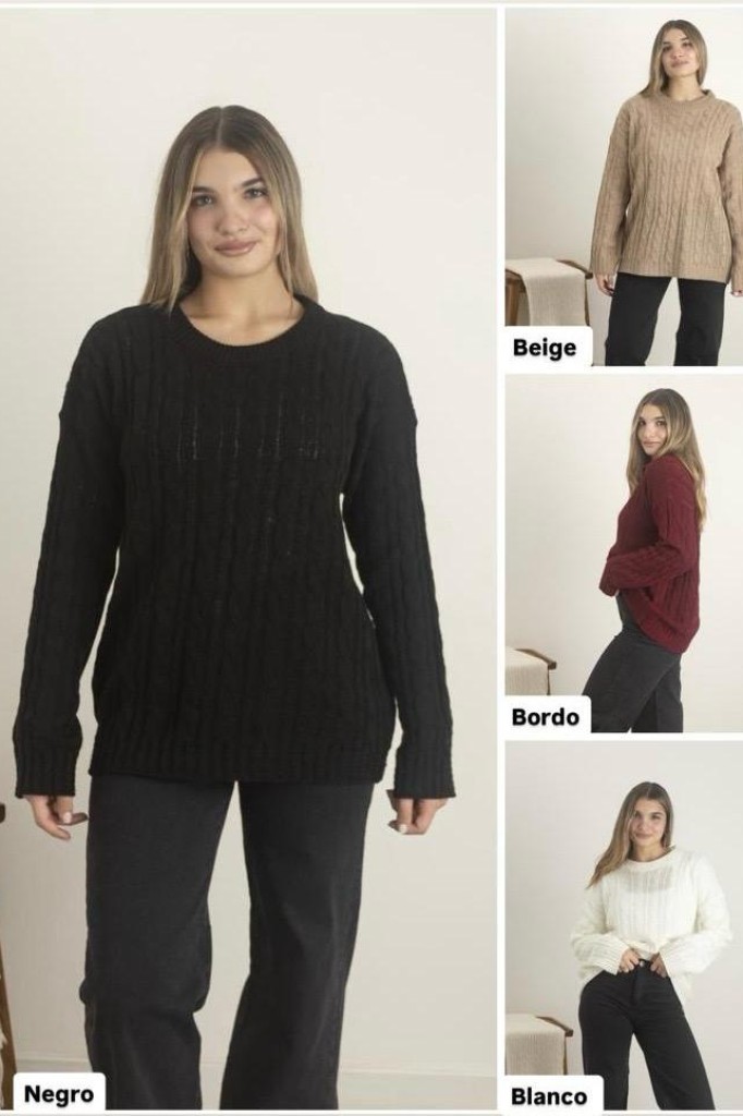 SWEATER GINA TELA: lana TALLE UNICO: Contorno de busto: 116 cm. Sisa: 23 cm. Largo: 69 cm. ABARCA HASTA UN TALLE 5 APROX. Las medidas son aproximadas y pueden tener variaciones.
