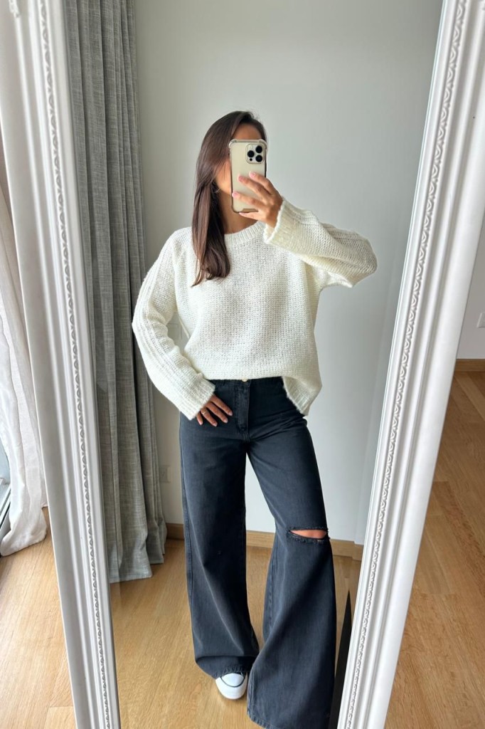 SWEATER SOFIA TELA: lana TALLE UNICO: Contorno de busto: 120 cm. Sisa: 31 cm. Largo: 65 cm. ABARCA HASTA UN TALLE 4 APROX. Las medidas son aproximadas y pueden tener variaciones.