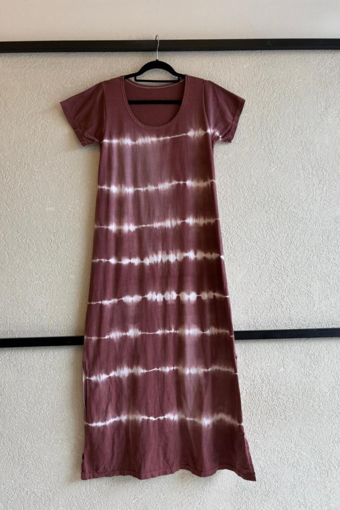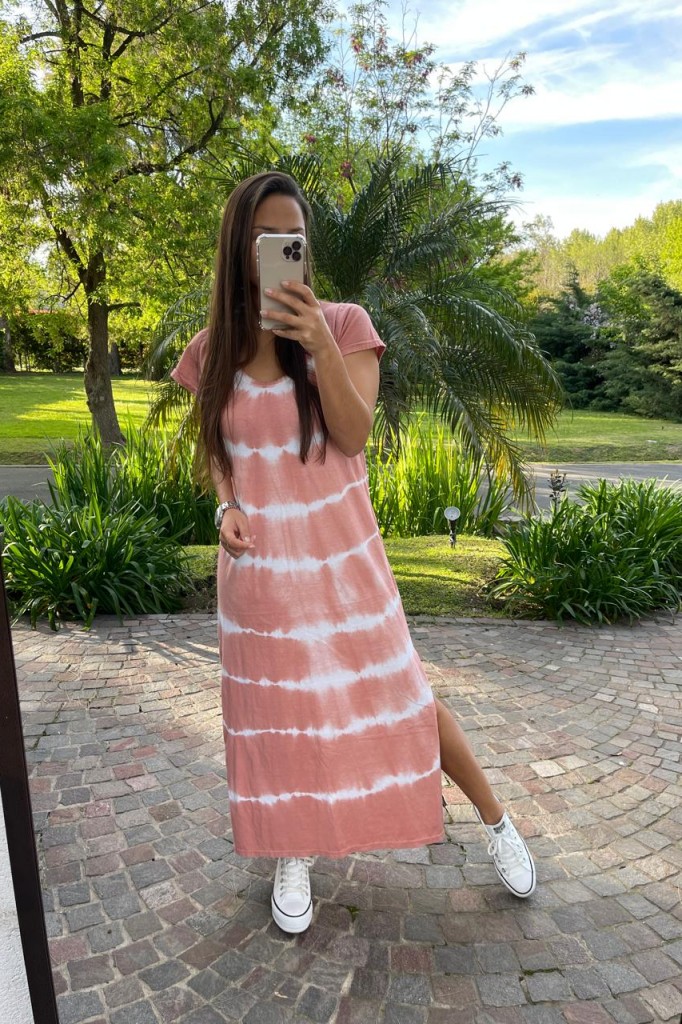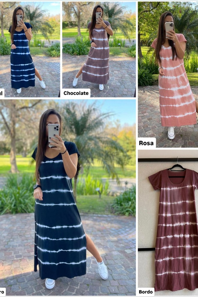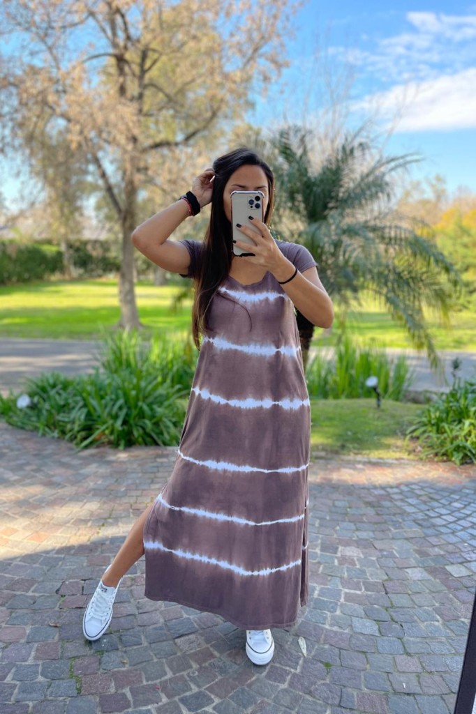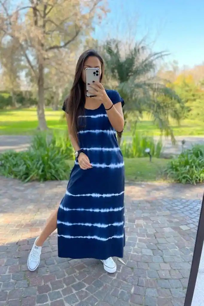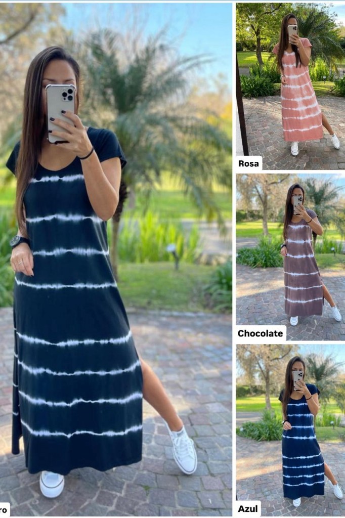 VESTIDO BAHAMAS M/C RAYADO TELA: jersey algodon TALLE UNICO: Contorno de busto: 82 cm. Sisa: 23 cm. Largo:137 cm Abarca hasta un 4/5 aprox. Debido al proceso de prelavado las medidas y tonos pueden variar.