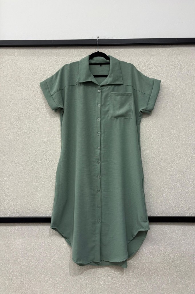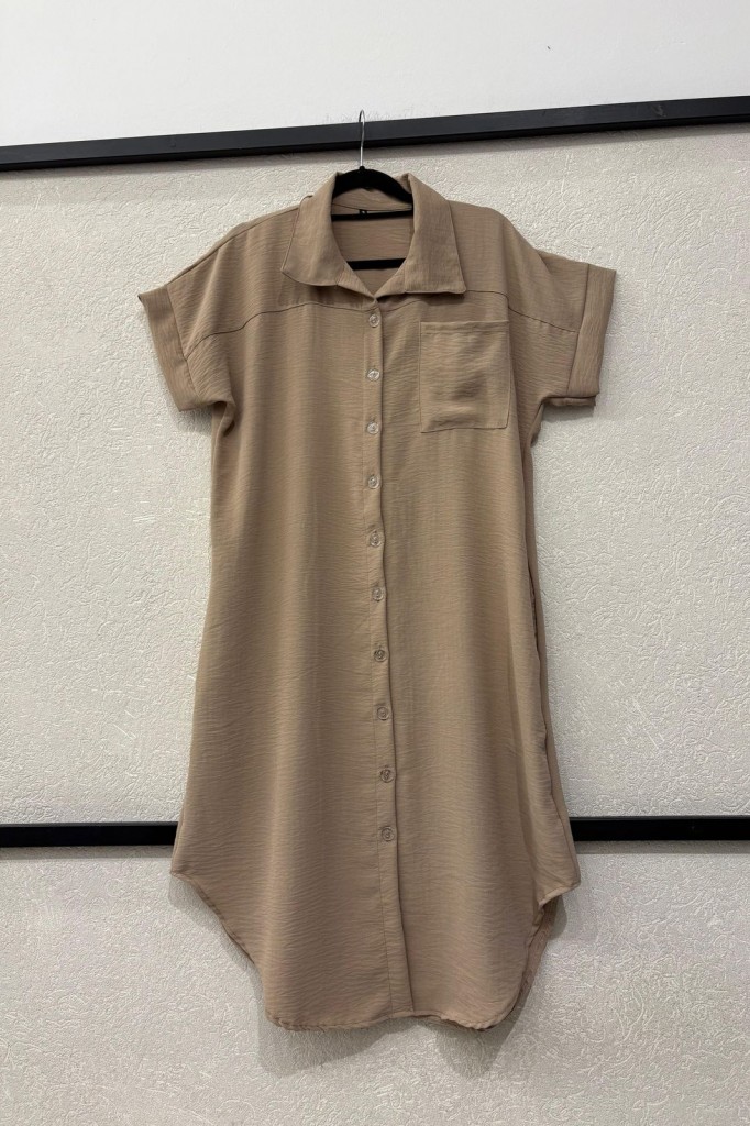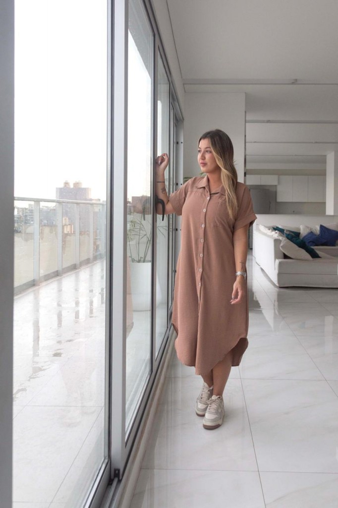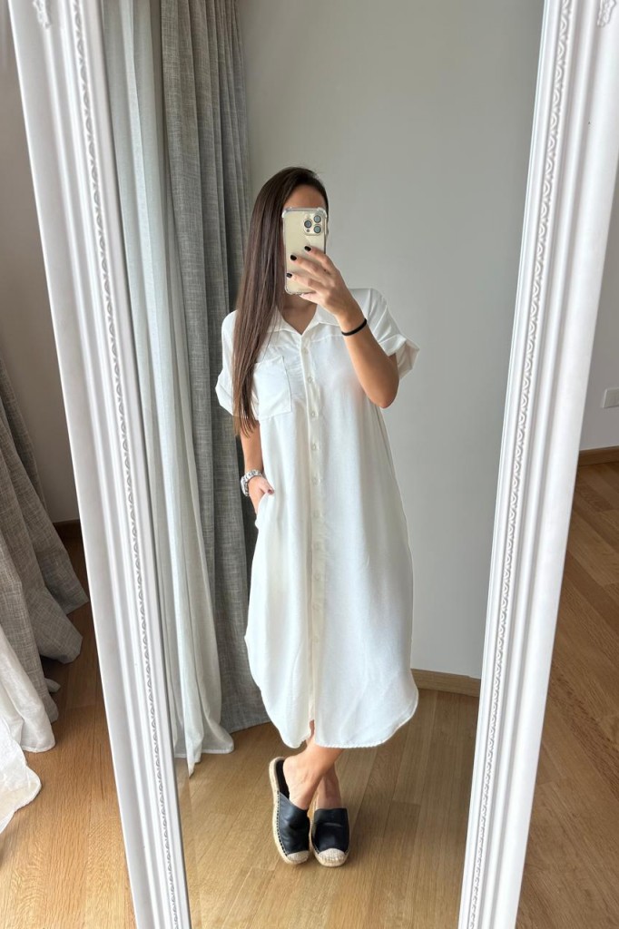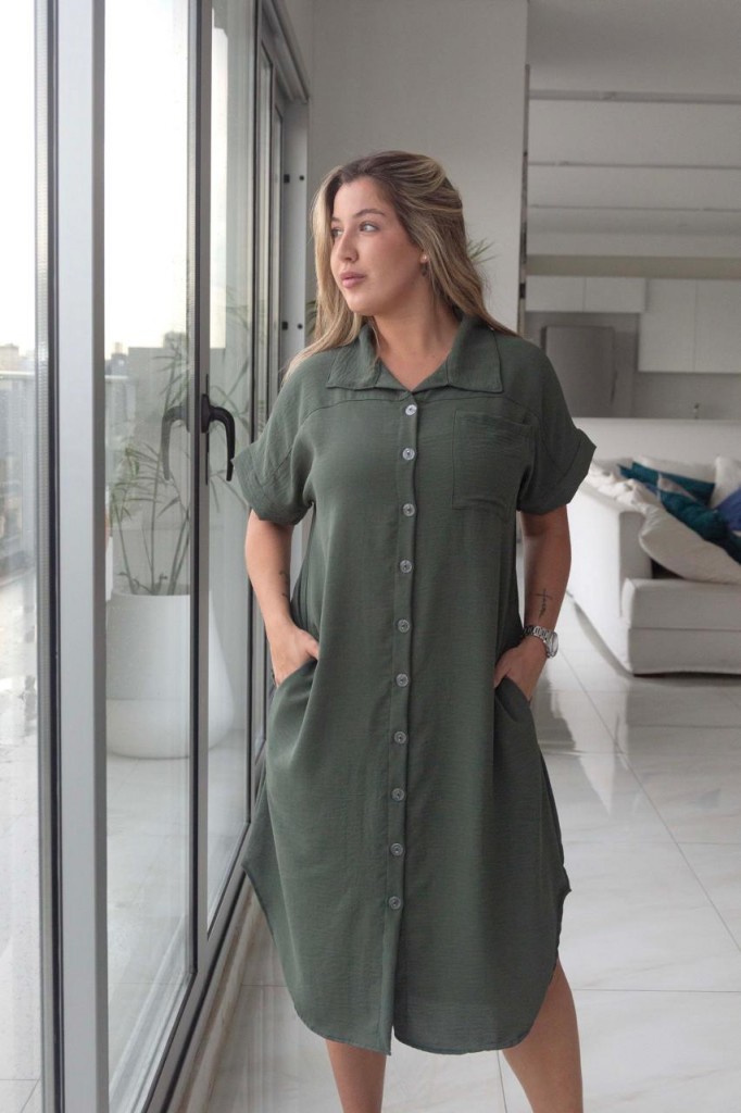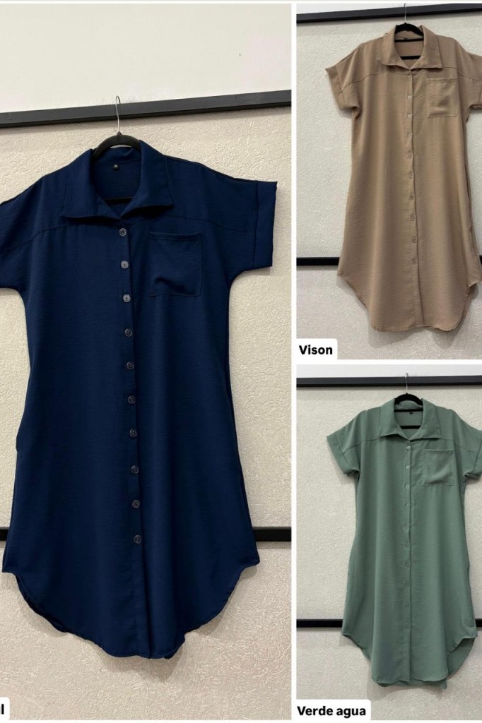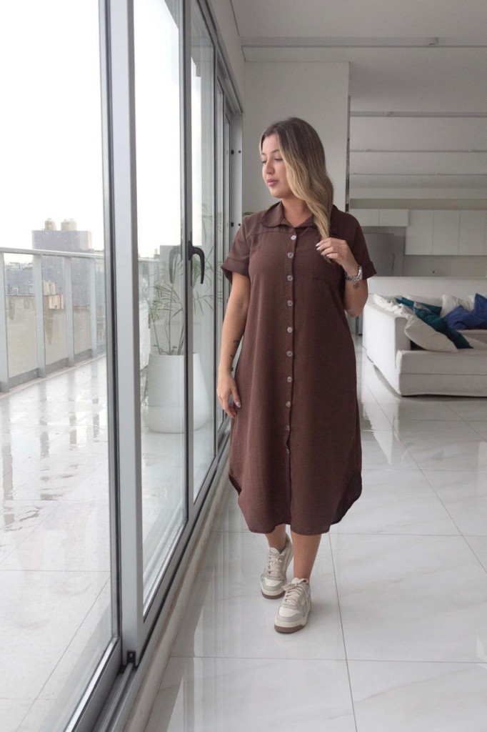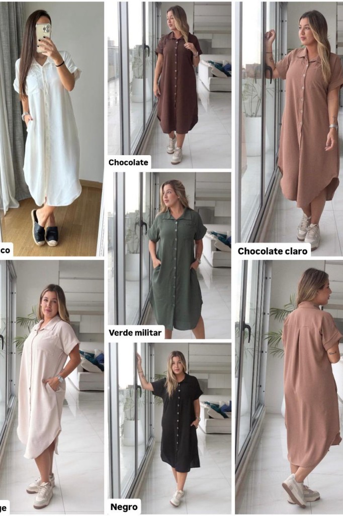 VESTIDO CAMISERO LARGO TELA: cey TALLE 3: Contorno de busto: 112 cm. Sisa: 26 cm. Largo: 113 cm. TALLE 6: Contorno de busto: 120 cm. Sisa: 29 cm. Largo: 119 cm. Las medidas son aproximadas y pueden tener variaciones.