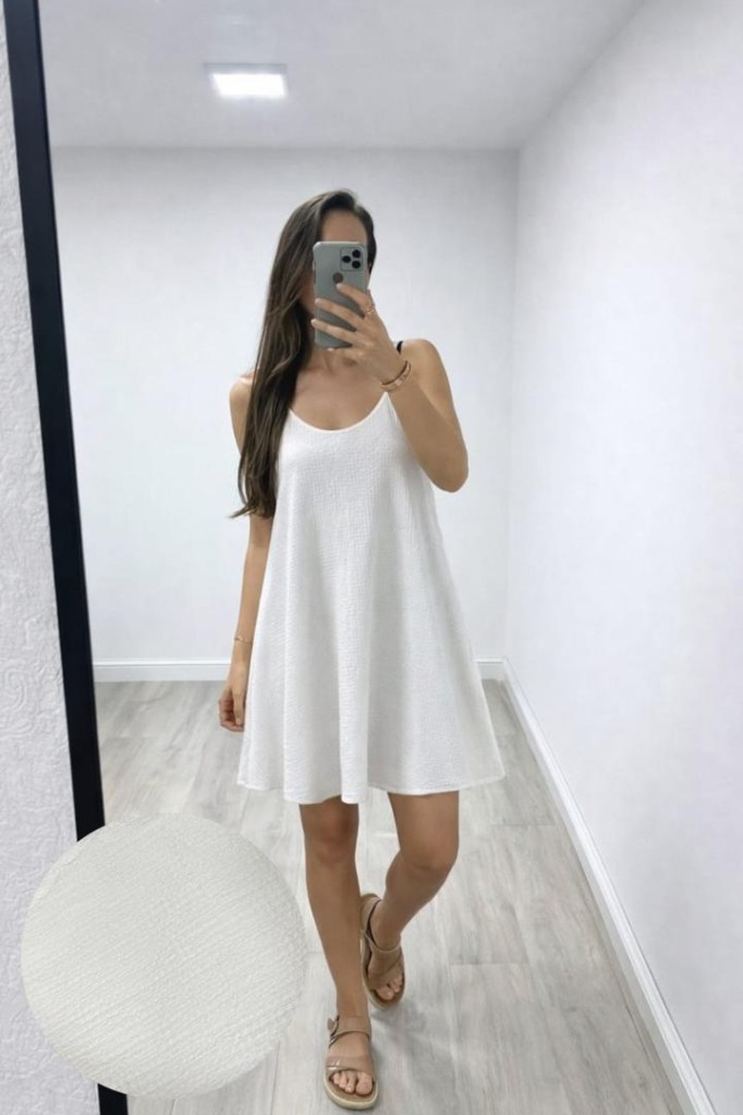 VESTIDO CORTO HAWAI TELA: hawai TALLE UNICO: Contorno de busto: 100 cm. Sisa: 29 cm. Largo: 100 cm Abarca hasta un 4/5 aprox. Las medidas son aproximadas y pueden tener variaciones