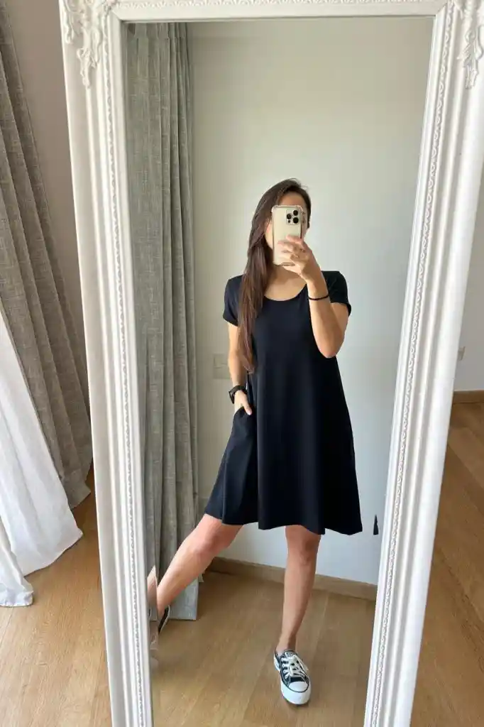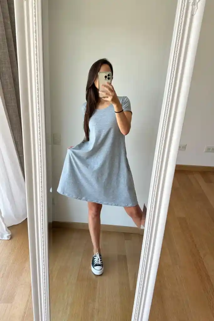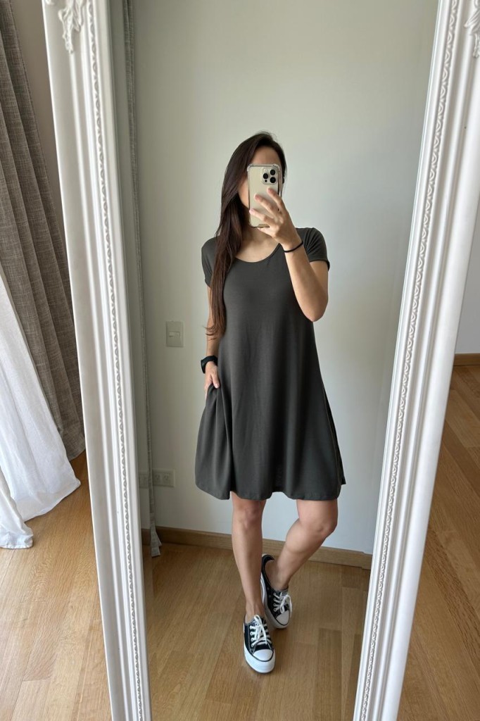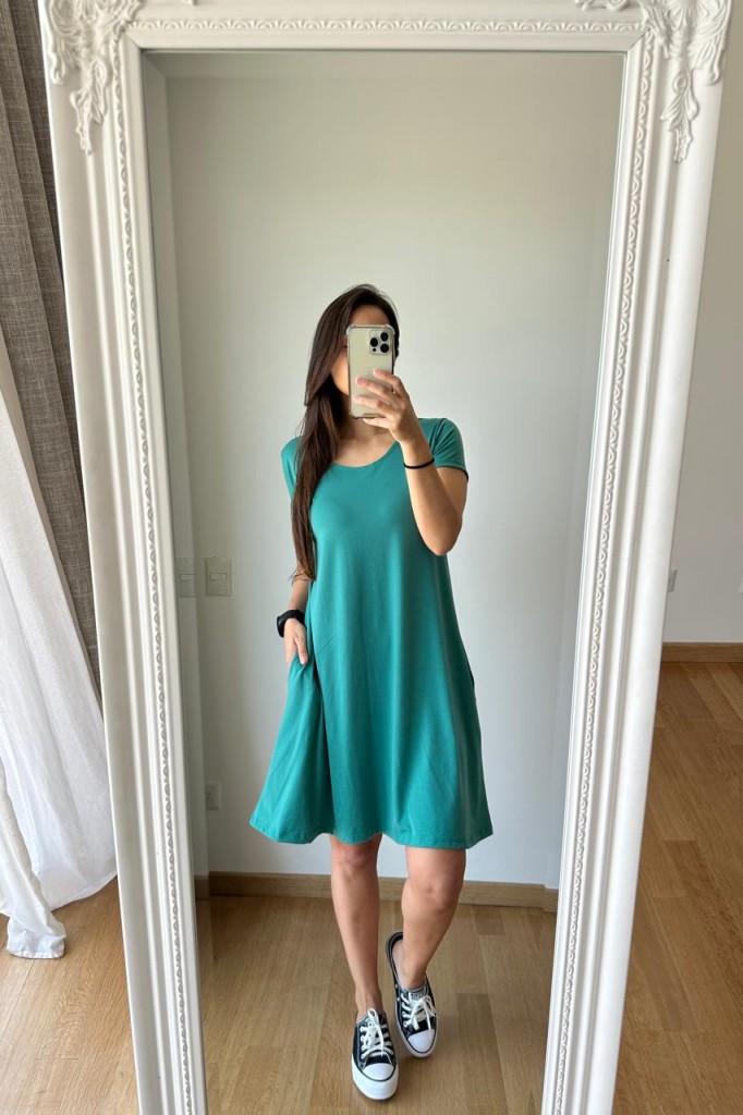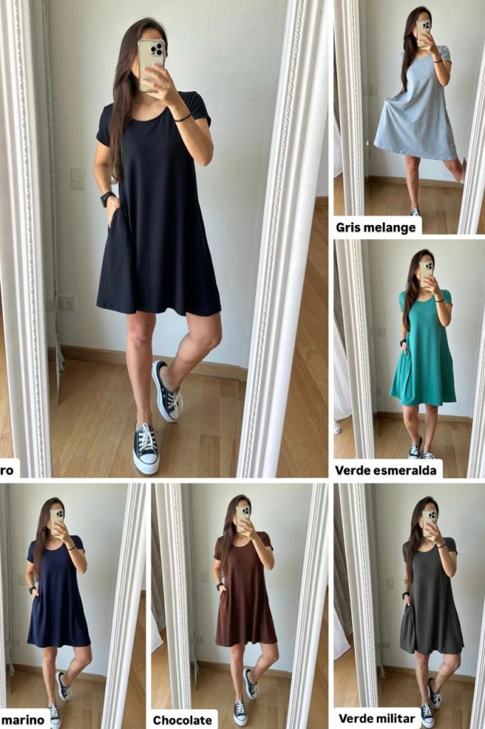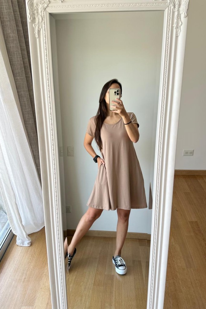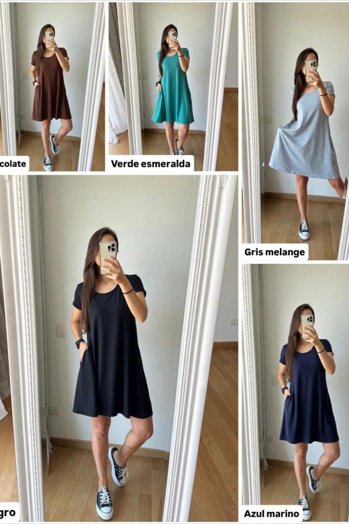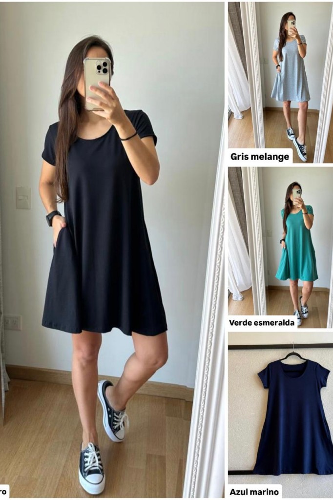 VESTIDO CORTO MANGA CORTA TELA: modal TALLE UNICO: Contorno de busto: 90 cm. Sisa: 20 cm. Largo: 89 cm Abarca hasta un 5/6 aprox. Las medidas son aproximadas y pueden tener variaciones