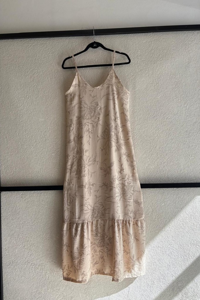 VESTIDO FAKE BRODERI TELA: fake broderi TALLE UNICO: Contorno de busto: 90 cm. Sisa: 31 cm. Largo: 143 cm Abarca hasta un aprox. Las medidas son aproximadas y pueden tener variaciones