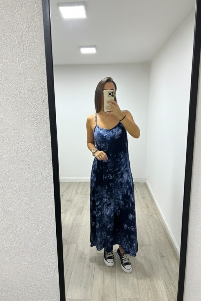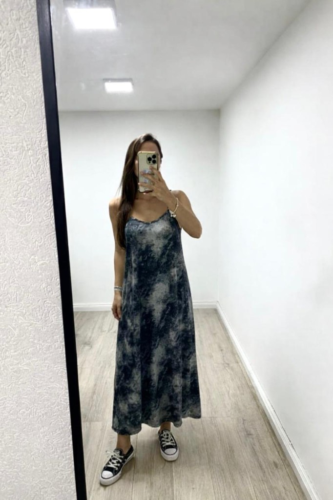VESTIDO MILO TELA: morley estampado TALLE UNICO: Contorno de busto: 96 cm. Sisa: 22 cm. Largo: 123 cm Abarca hasta un 5 aprox. Las medidas son aproximadas y pueden tener variaciones
